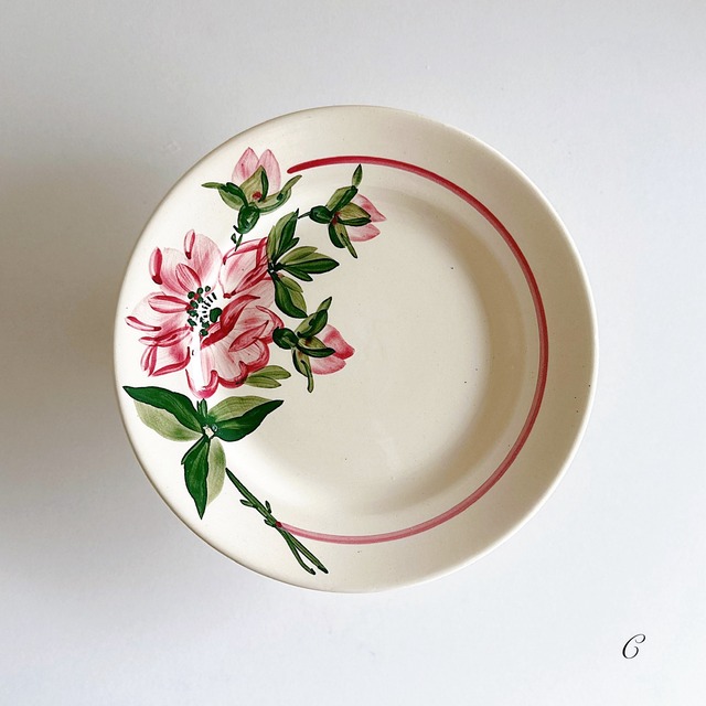 デザートプレート 陶器 Badonviller バドンヴィレー 生産 : 1923年 サイズ : 直径 20.6cm / 高さ 2.4cm ヒビ・カケ・シミなく、使用感もほとんどなく、非常に良い状態です。