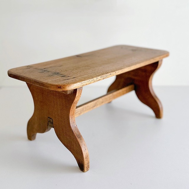ミニテーブル 木製 生産 : 1950年代 サイズ : 幅 32.5cm / 奥行 16.5cm / 高さ 15cm お部屋やお店のインテリアのアクセントに、高さや奥行を出すための必須アイテム。小さな植物やお気に入りの雑貨を飾る時にとても活躍してくれます。 ミニチュアドールのテーブルとしても、良い感じです。 多少のキズはありますが、がたつきもなく、目立つダメージもなく、非常に良い状態です。
