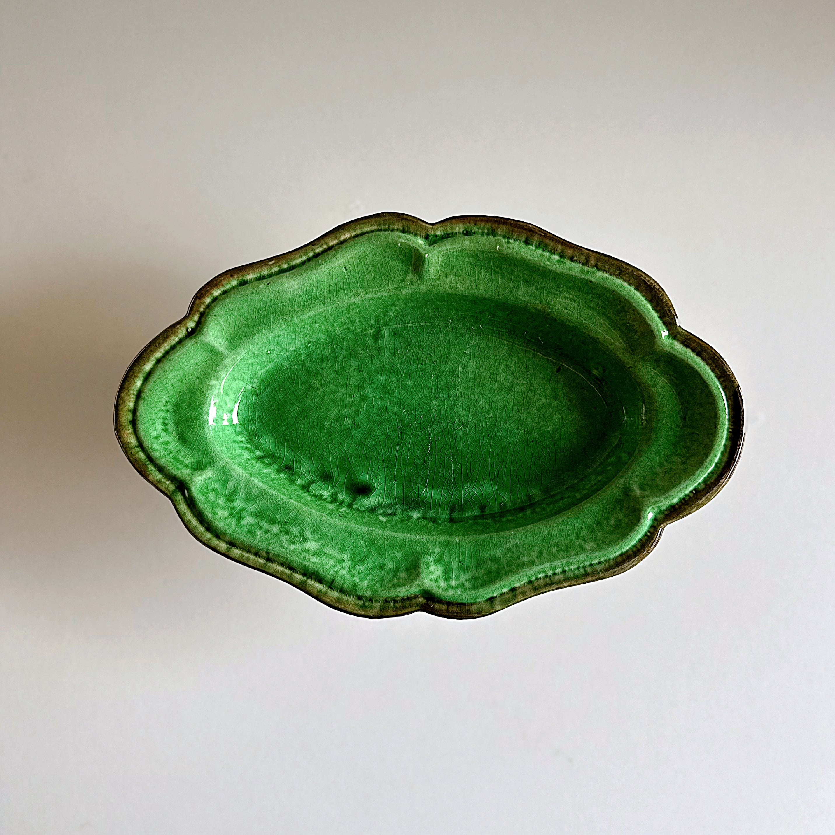 南仏陶器 緑釉 ラヴィエ 花リム Cerenne Vallauris B(フランス)
