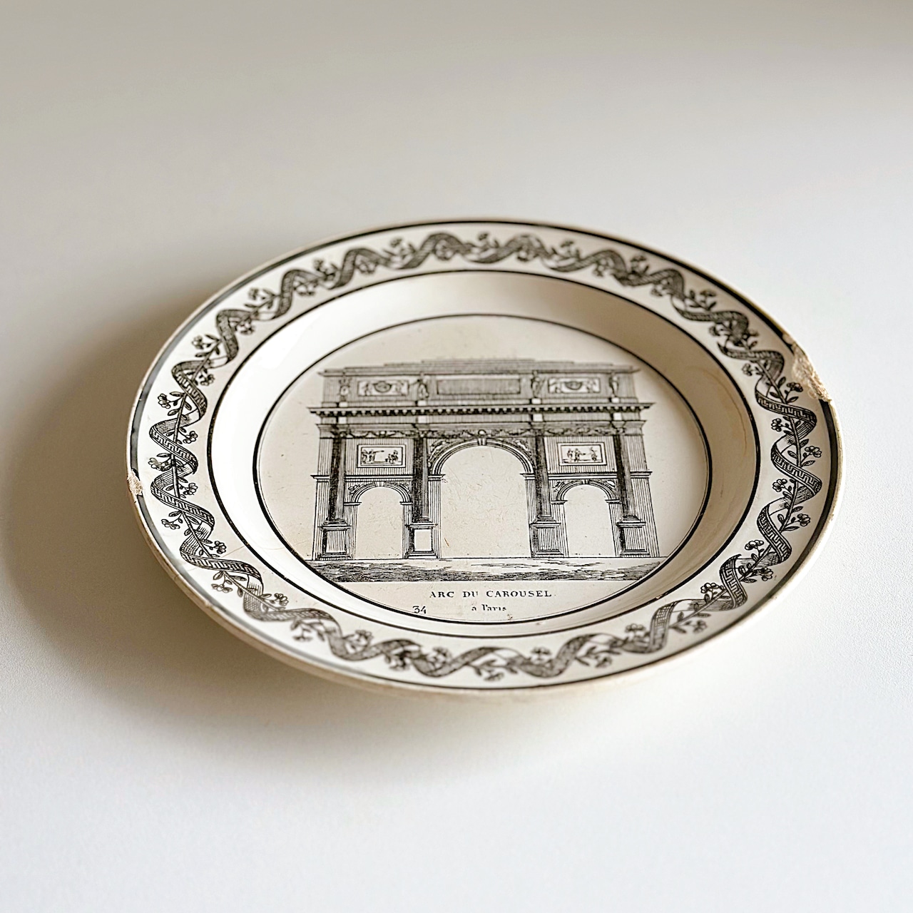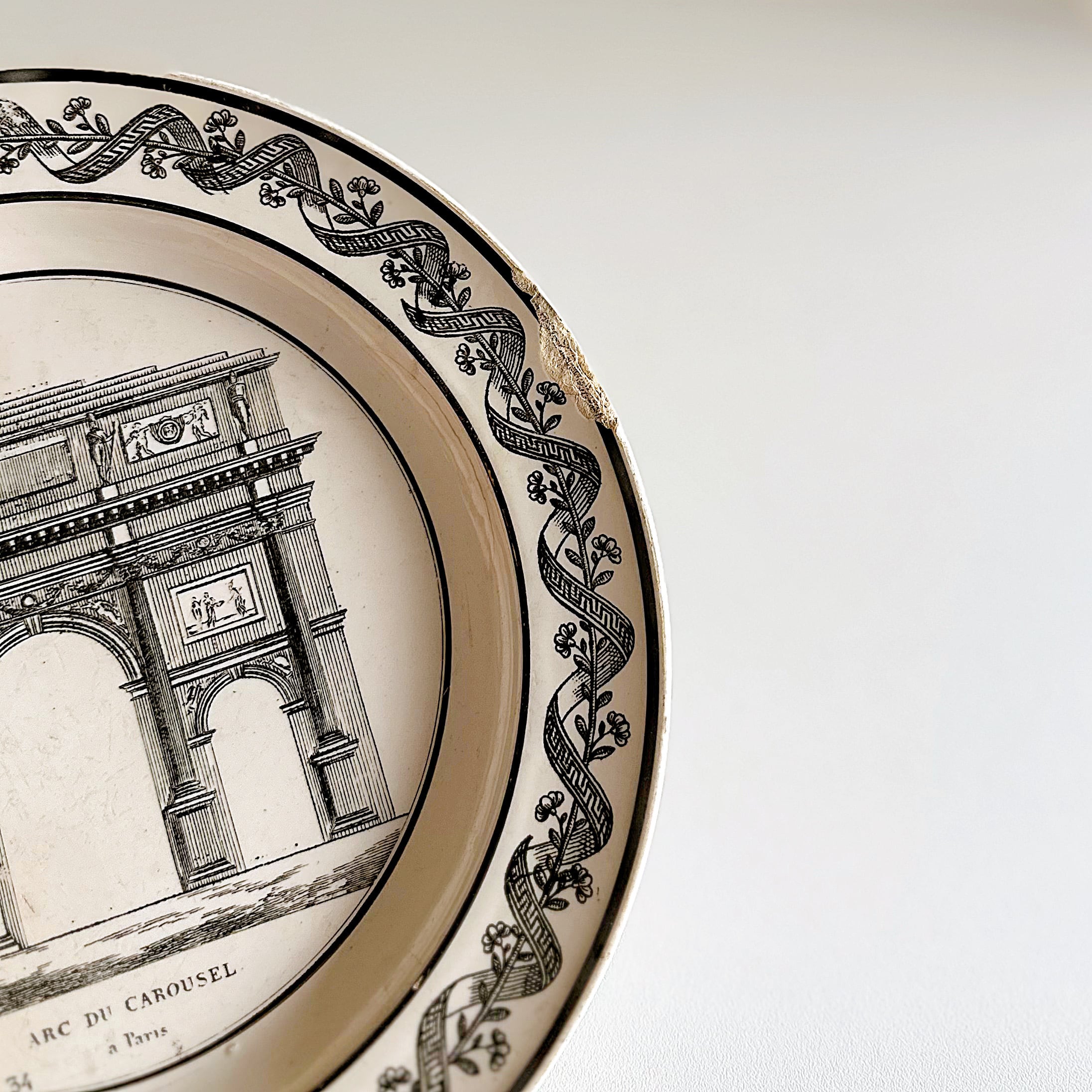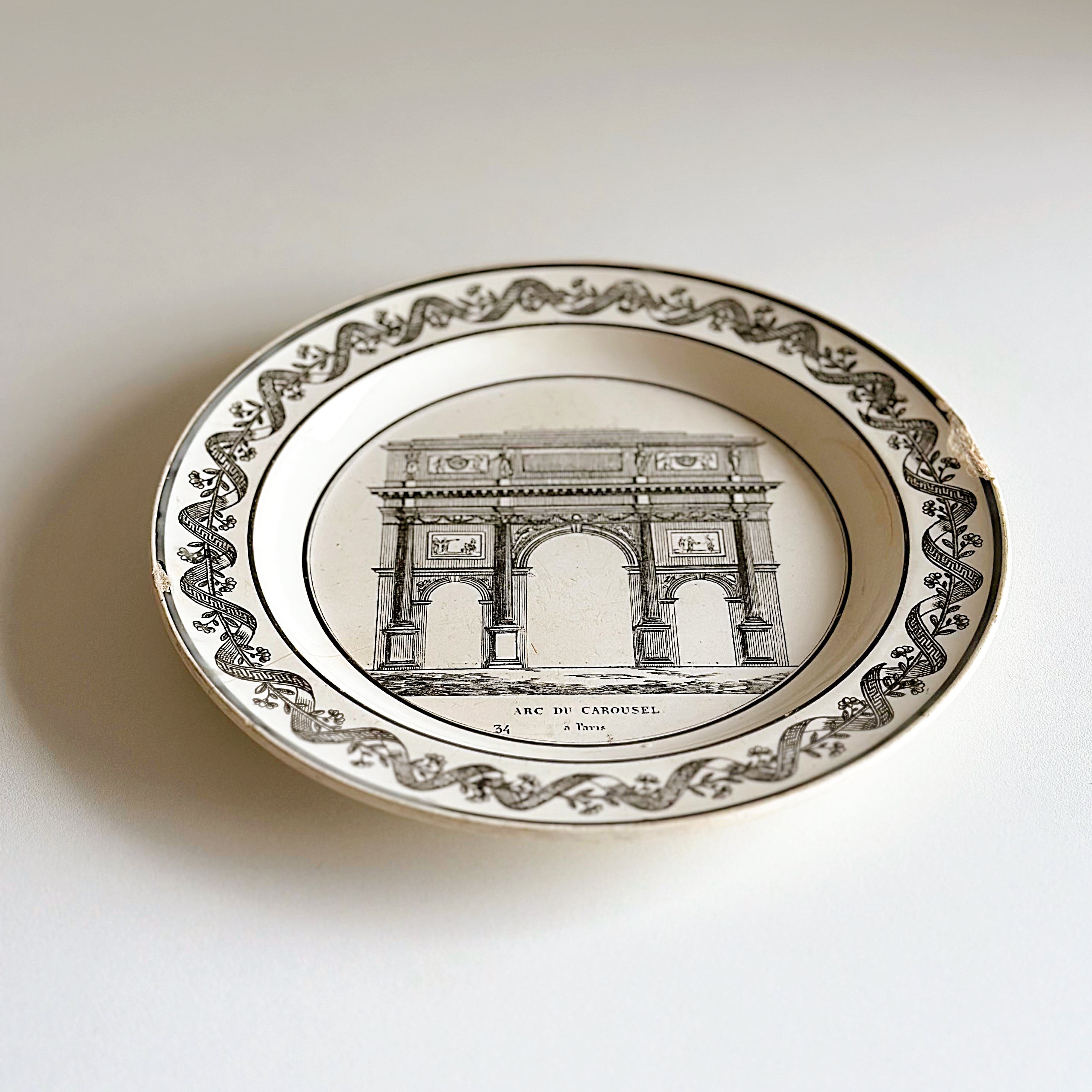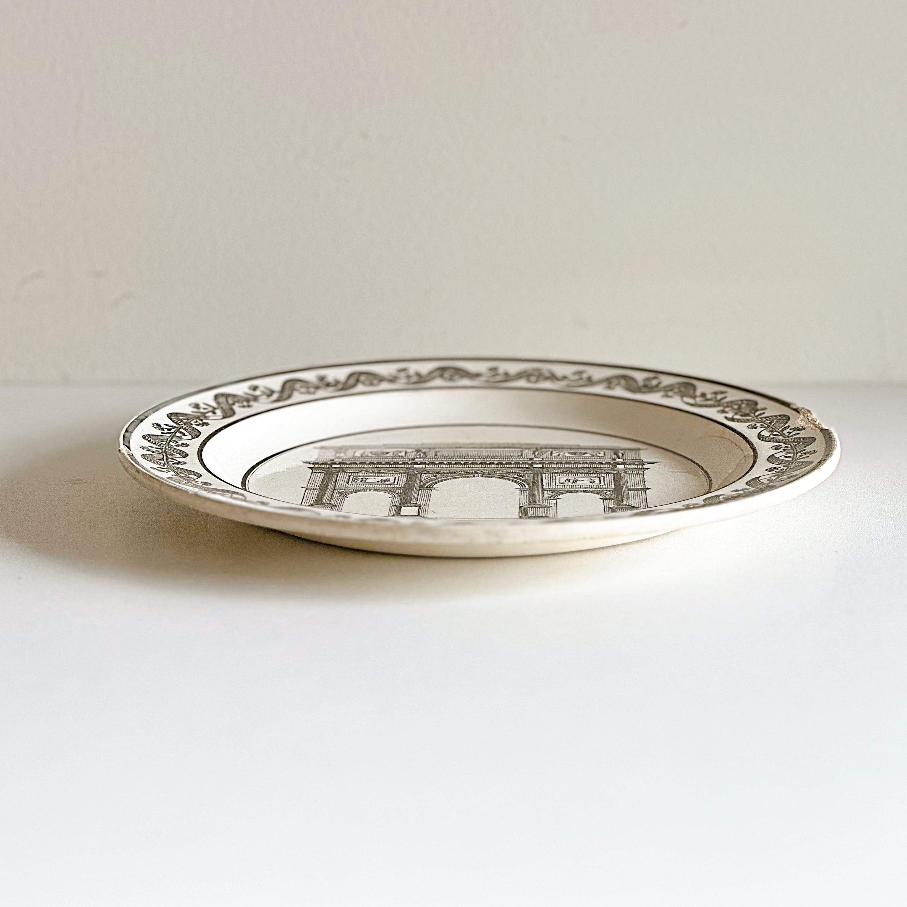 Choisy le Roi ショワジー・ル・ロワ ファイアンスフィーヌ グリザイユ プレート Arc du Carousel(フランス