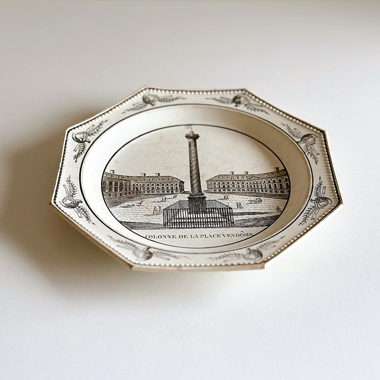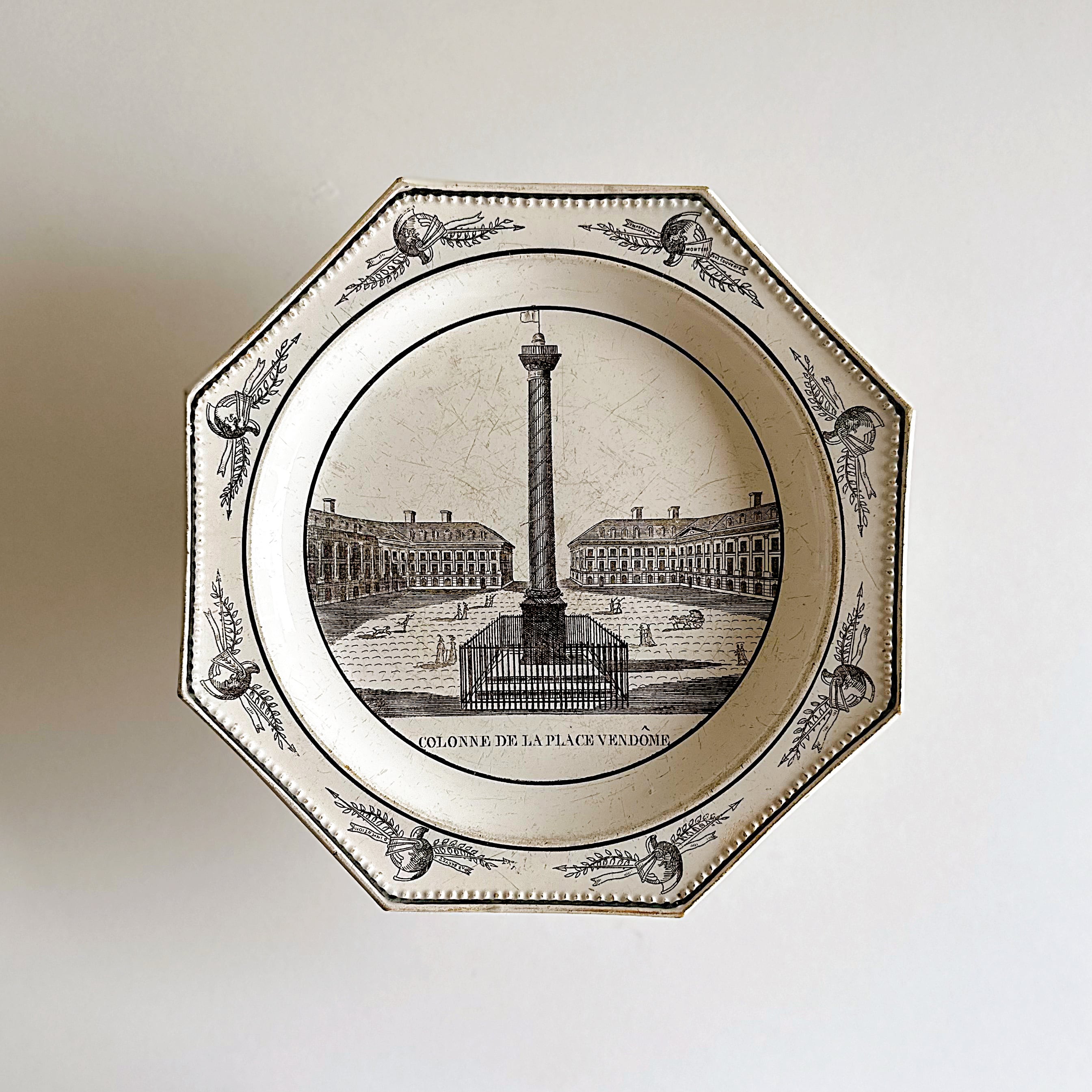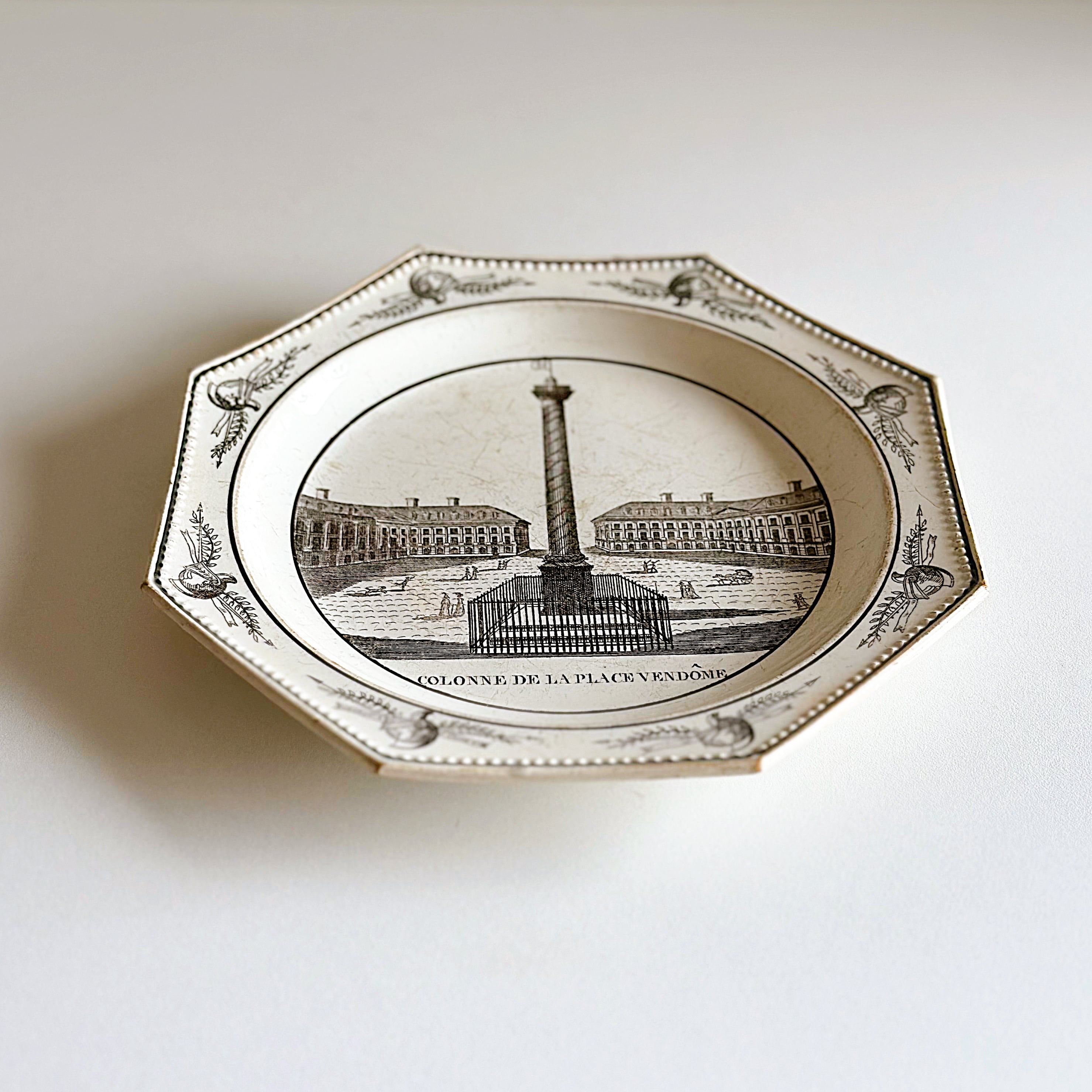 Montereau モントロー ファイアンスフィーヌ オクトゴナル グリザイユ プレート Colonne de La Place Vendôme(フランス)
