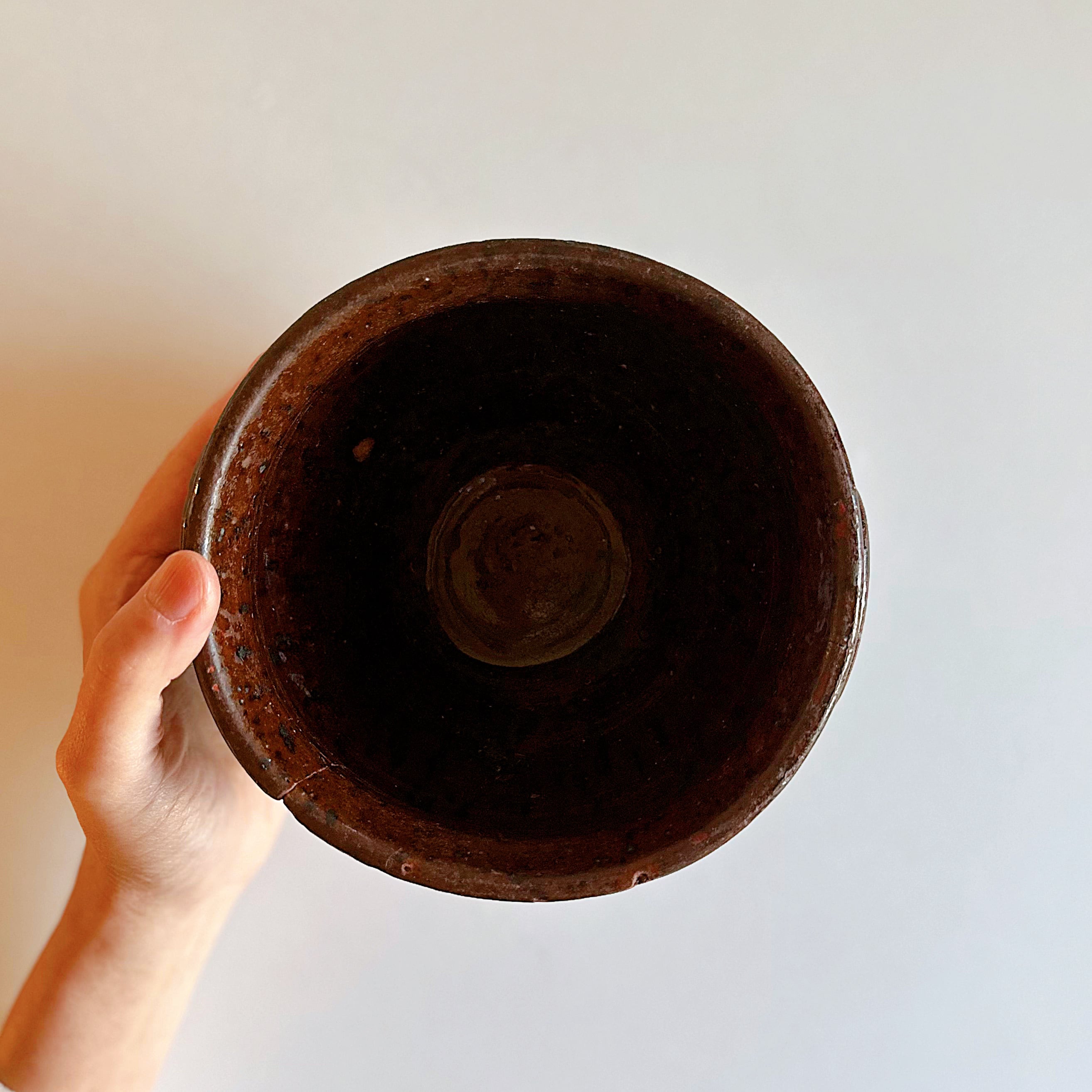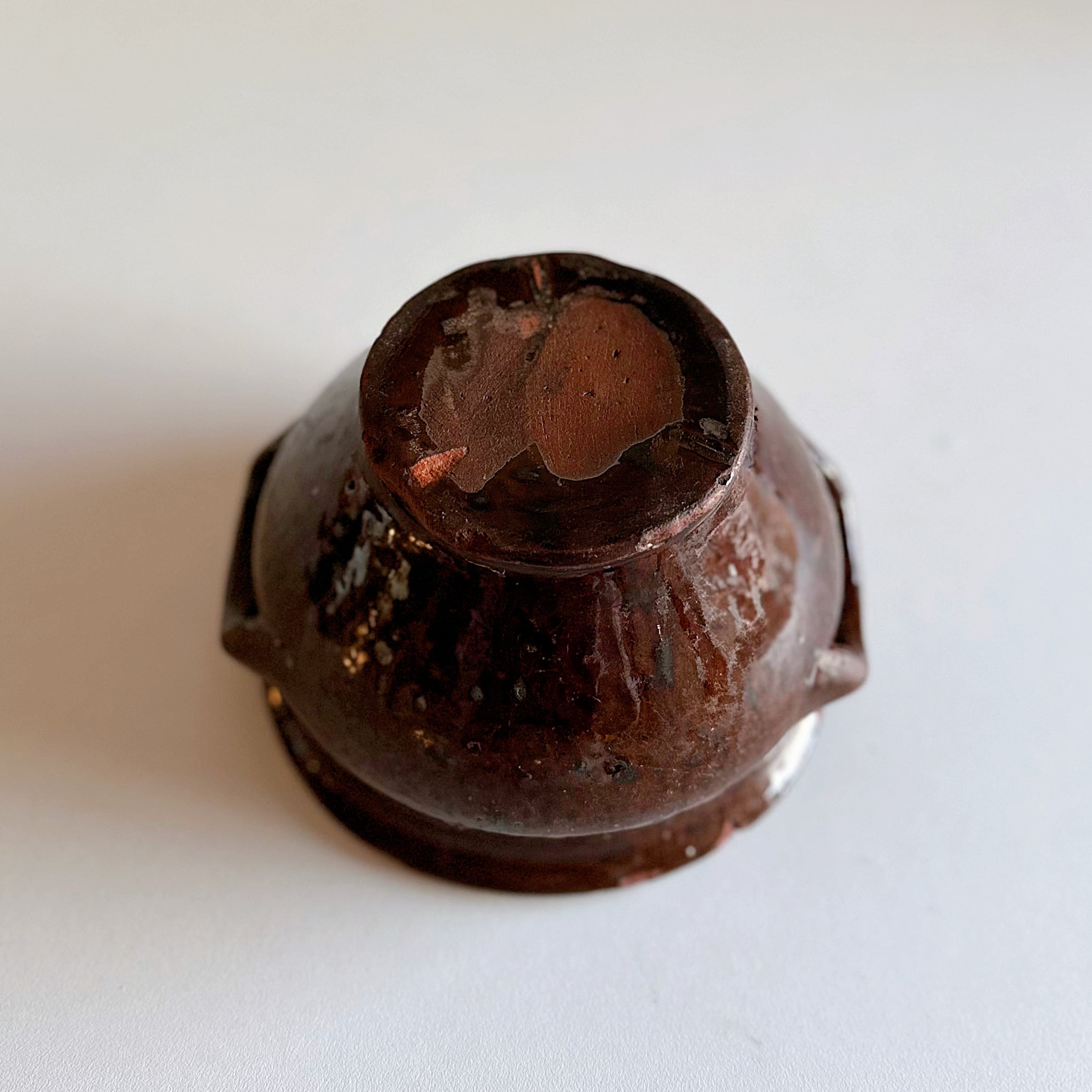 縁や台座に、古手ならではのカケがありますが、それが良いバランスで美しく、アンティークの醍醐味を味わえるかと思われます。飴釉の艶、鎮まる佇まいをご堪能ください。