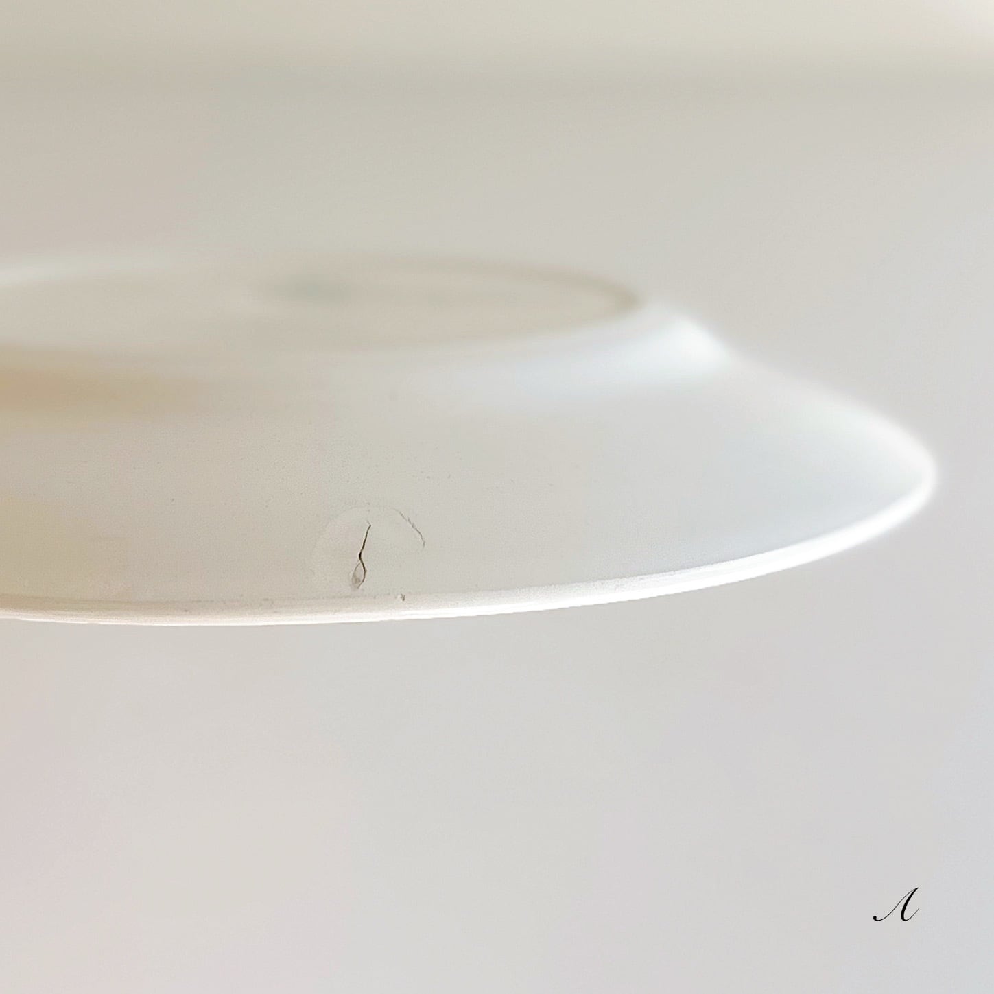 裏面に焼成時にできたシワがあります(上から釉薬がかかっています)縁に点のチップがあります。写真でご確認ください。