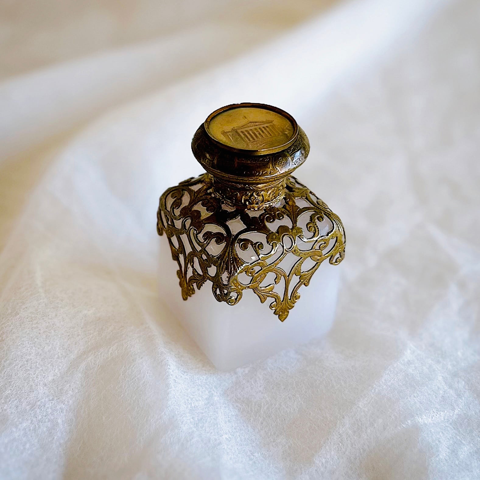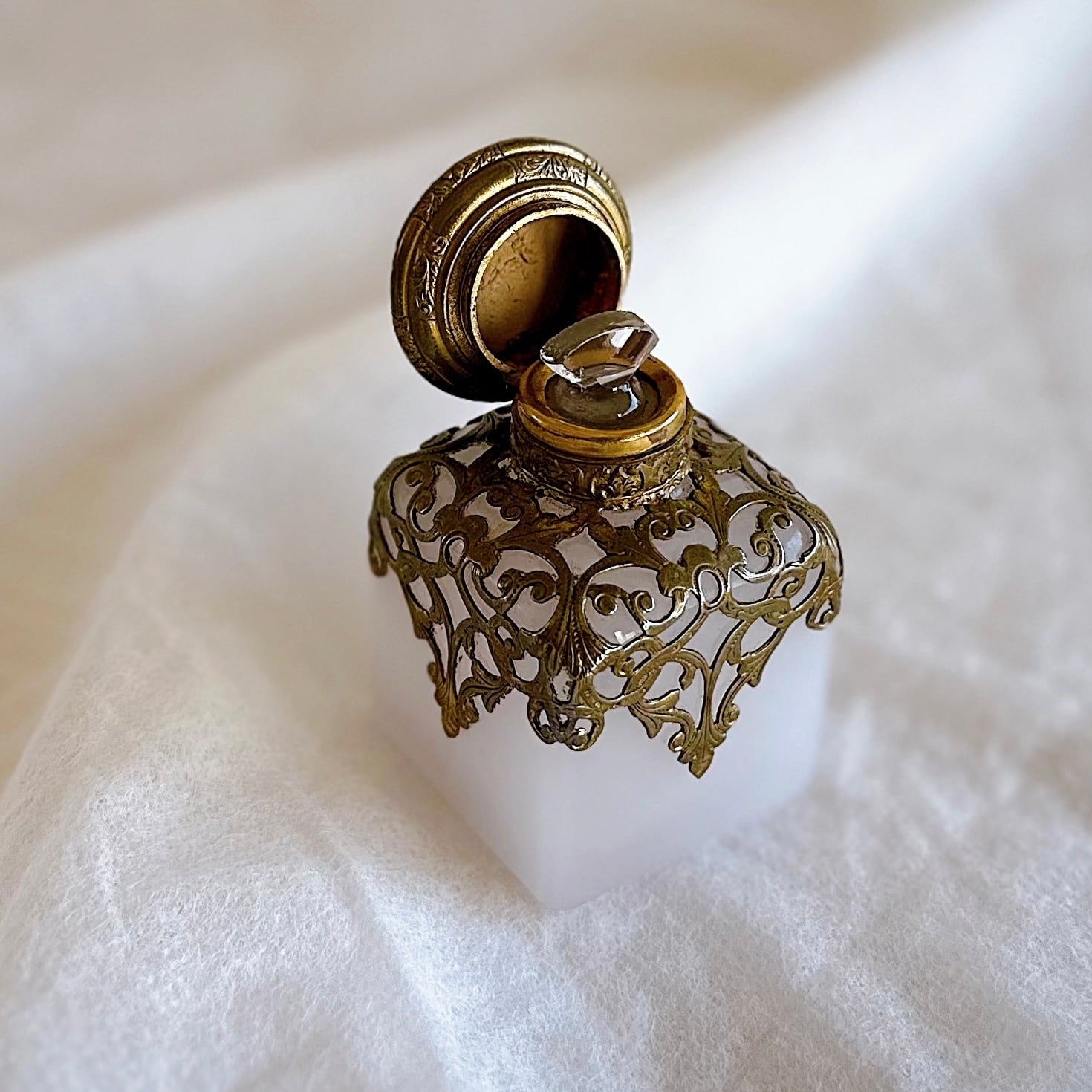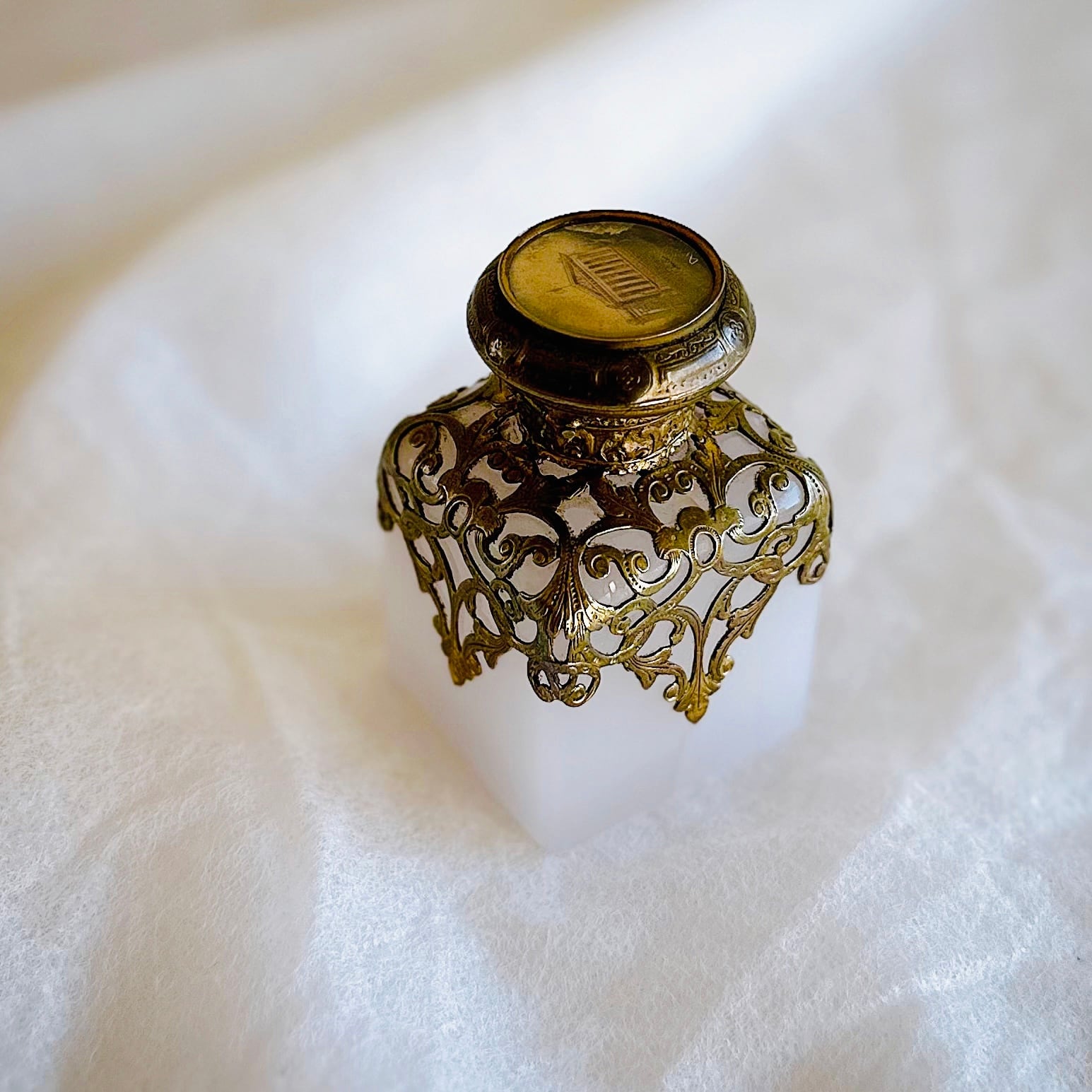 美しく面取りされた立方体は、乳白色のオパリンガラス。