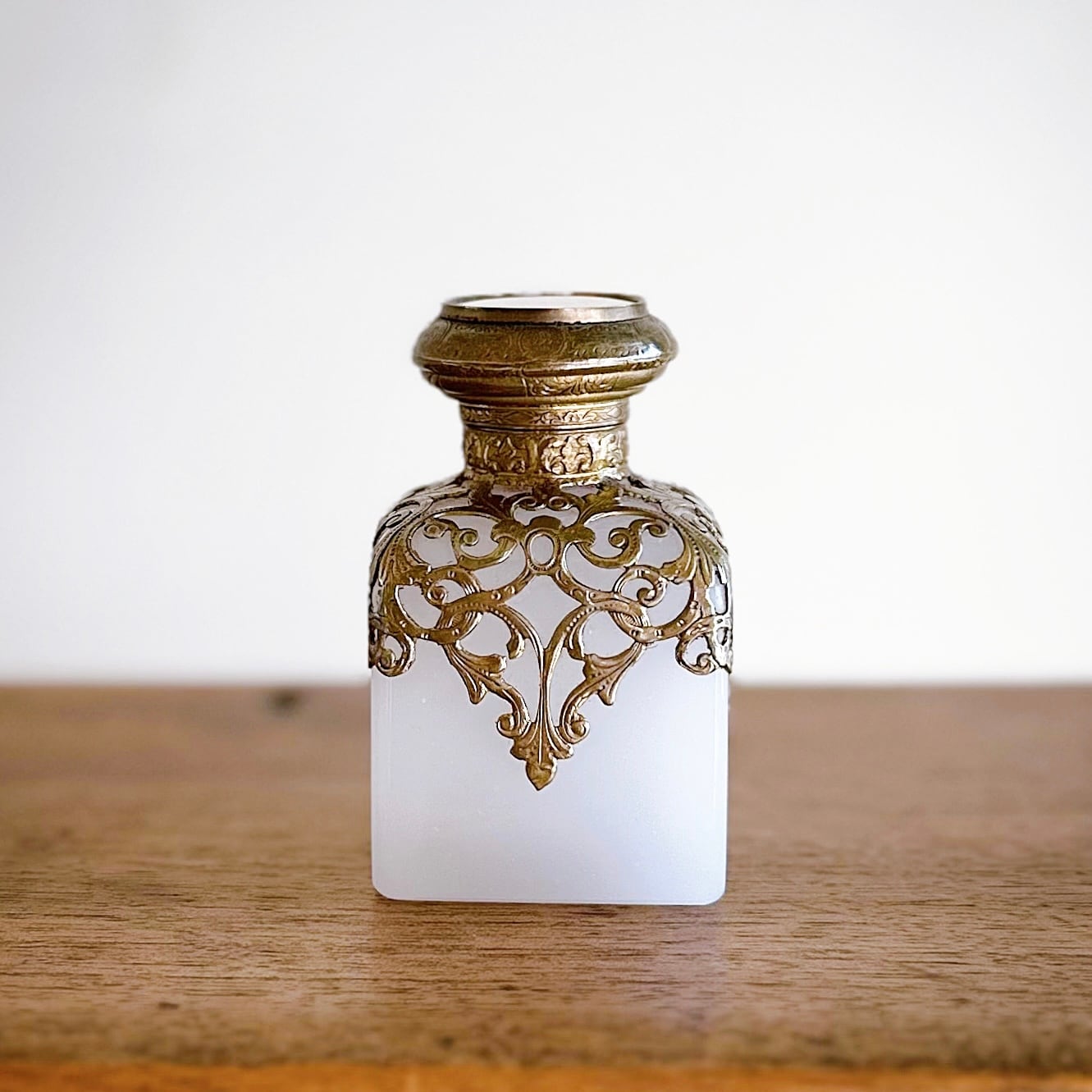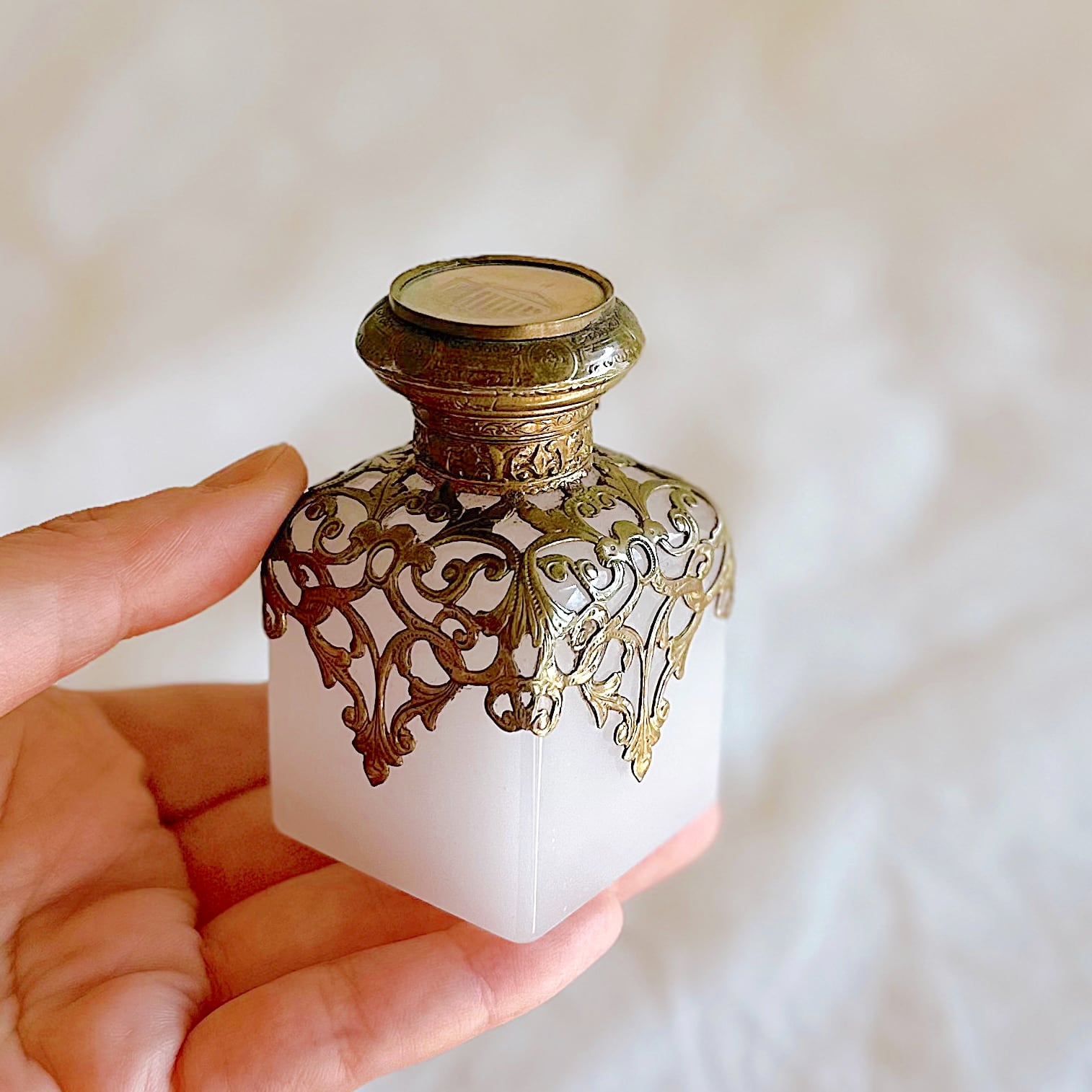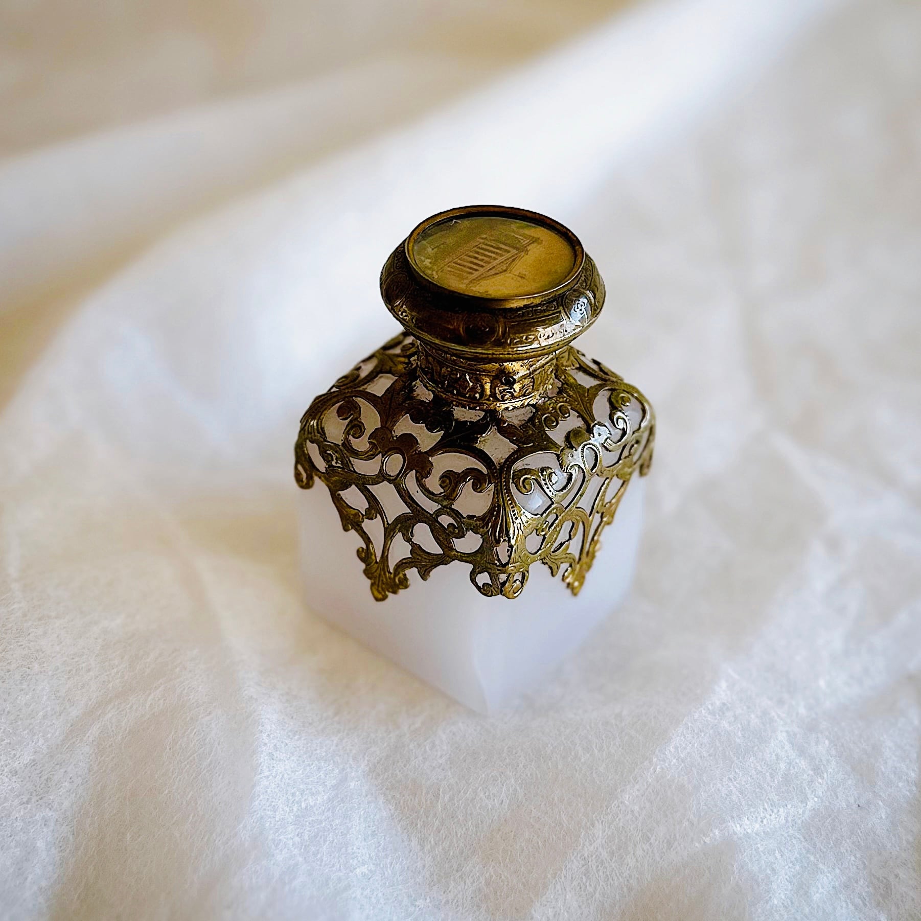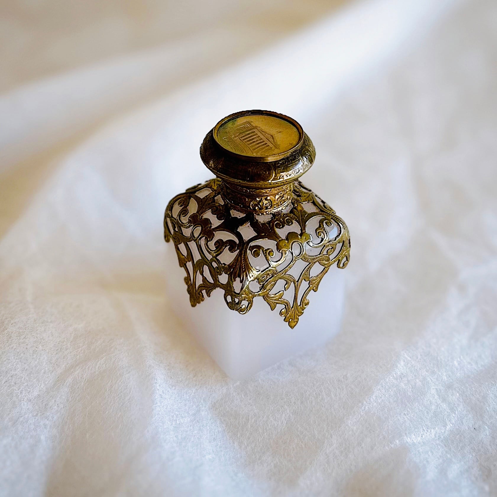 美しく面取りされた立方体は、乳白色のオパリンガラス。