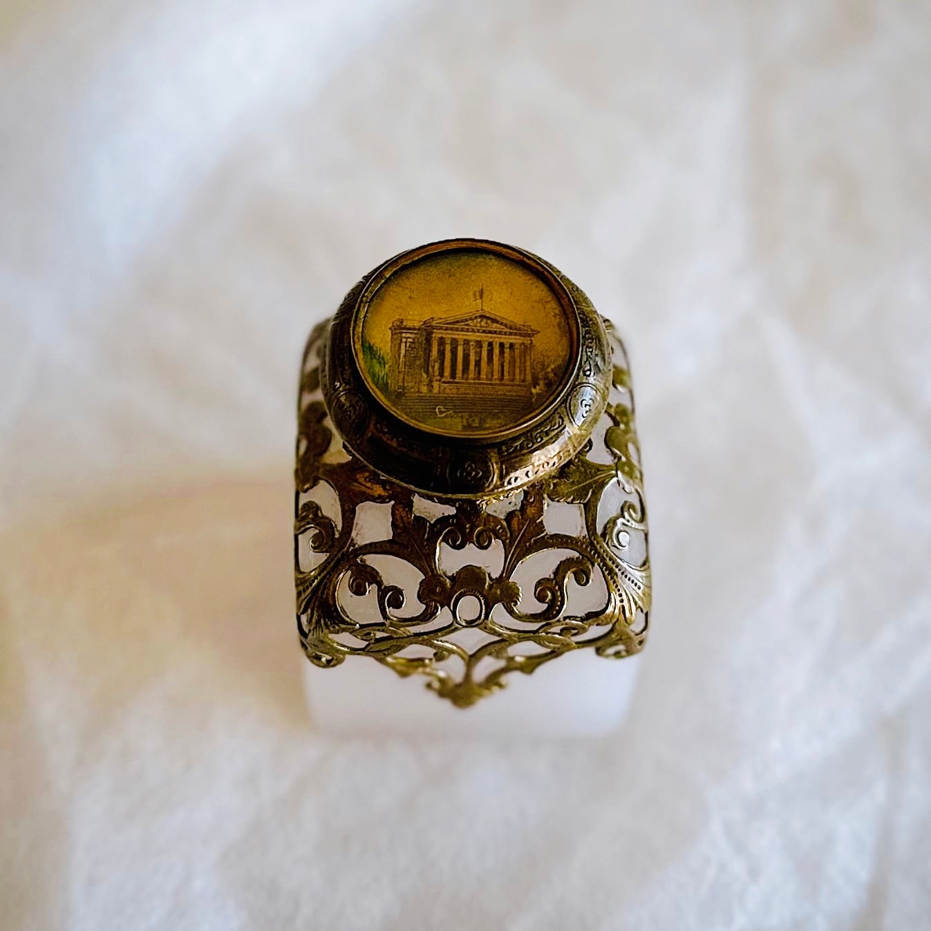 繊細にガーランドが彫られた蓋のトップには、フランス国旗を掲げた、当時の下院 - Chambre des députés (現在の国民議会 Assemblée nationale)の絵が嵌め込まれています。