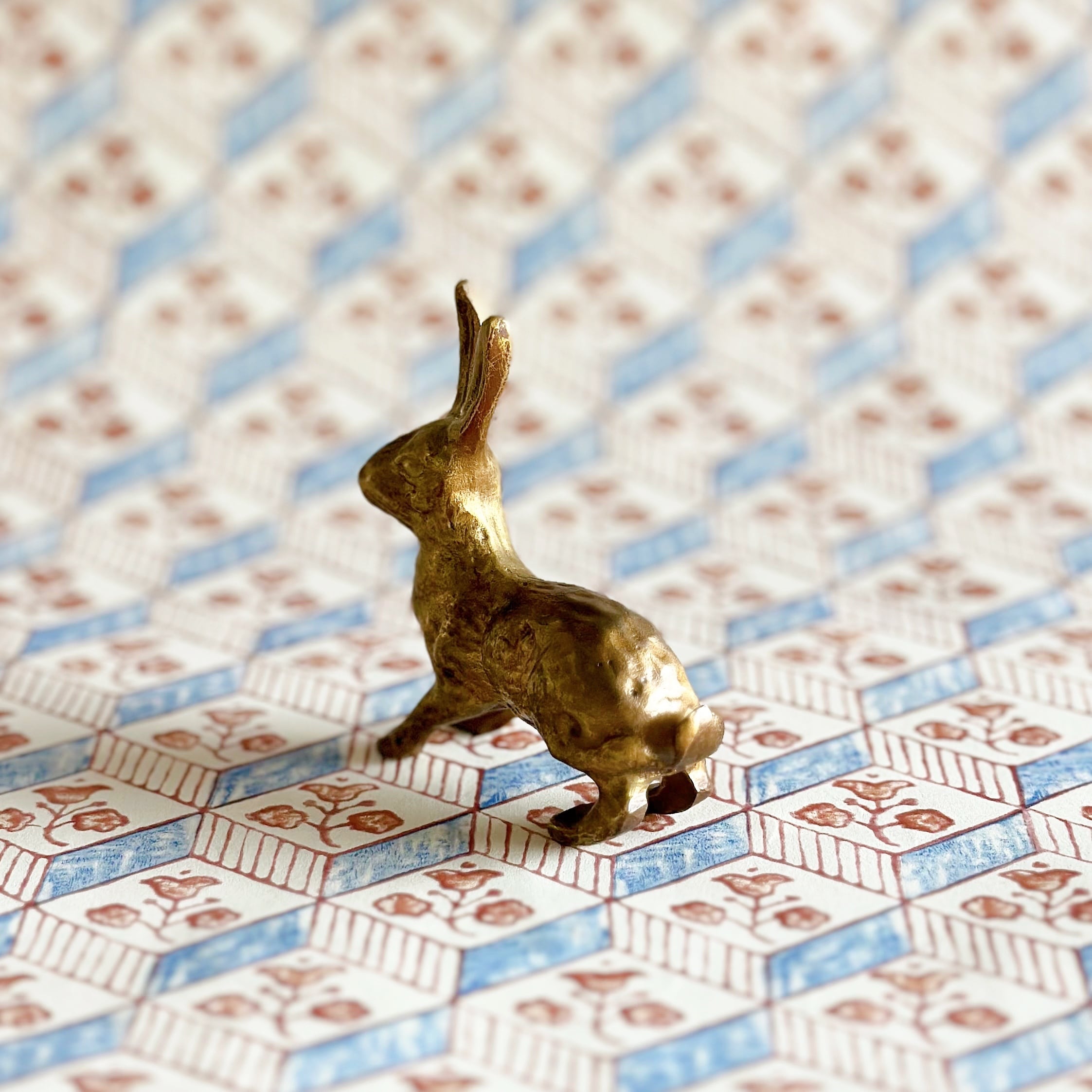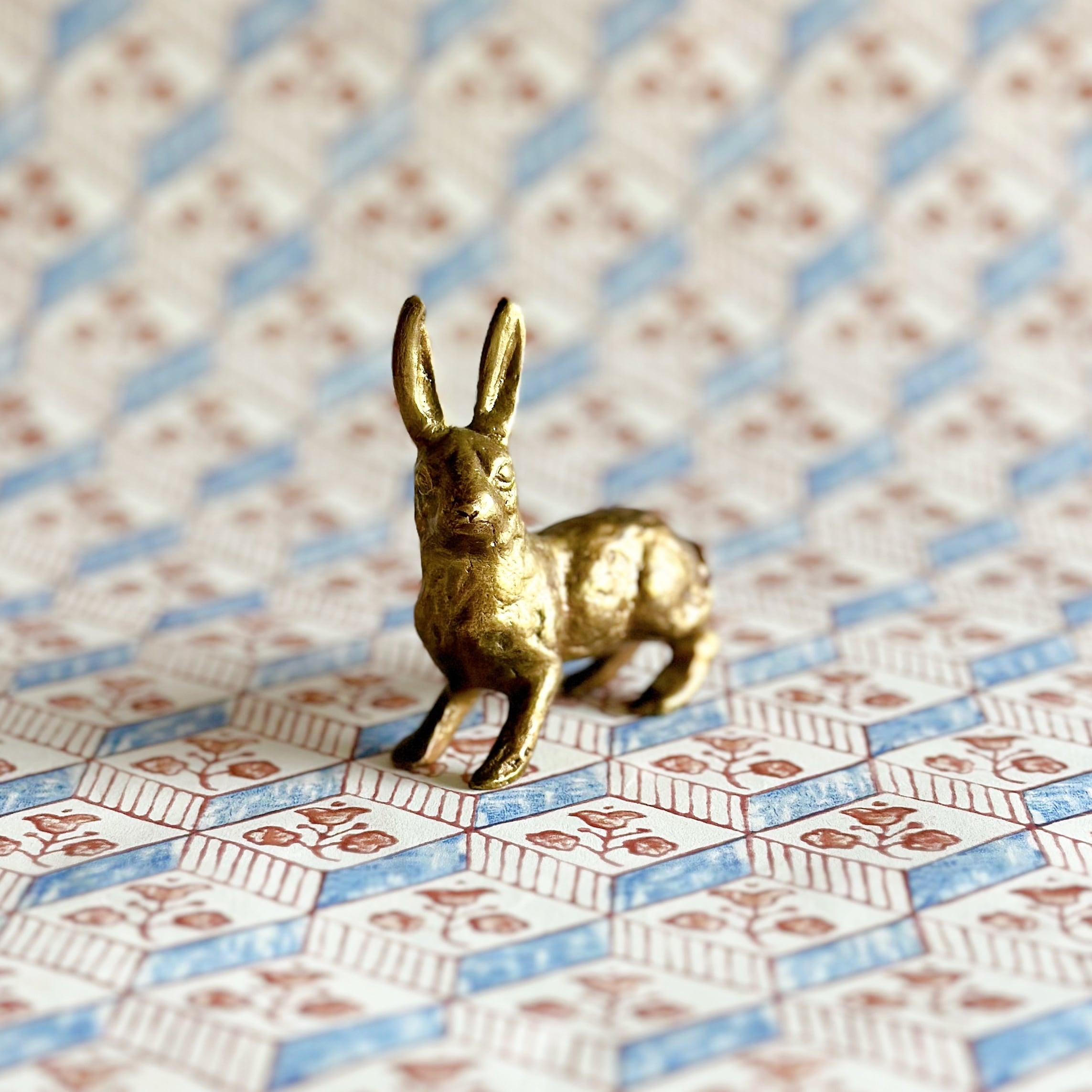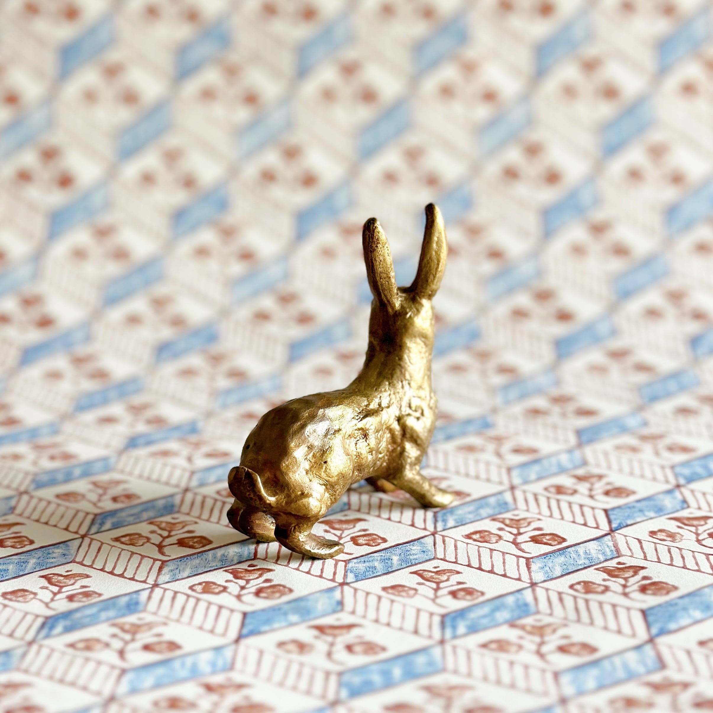 美しく繊細に彫られた、うさぎのブロンズのオブジェです。