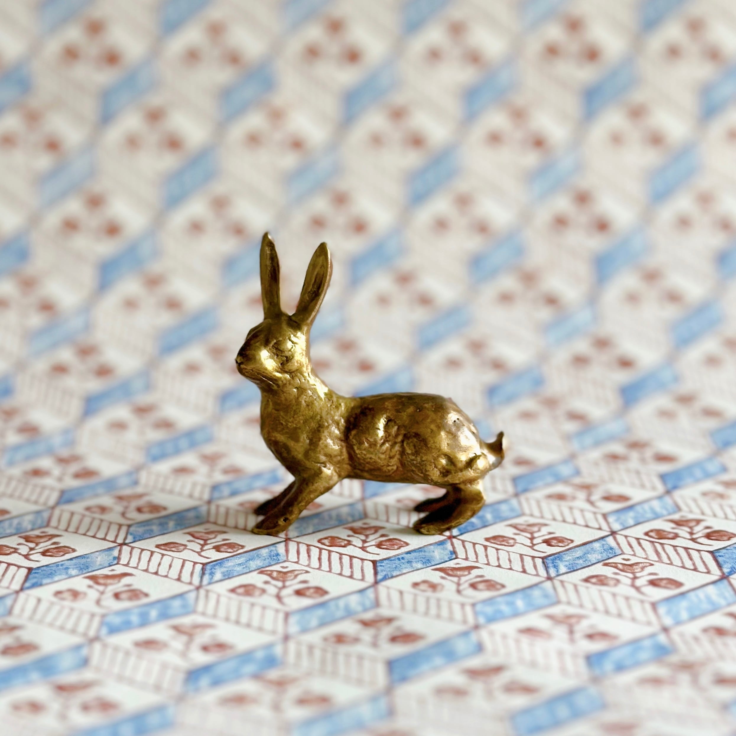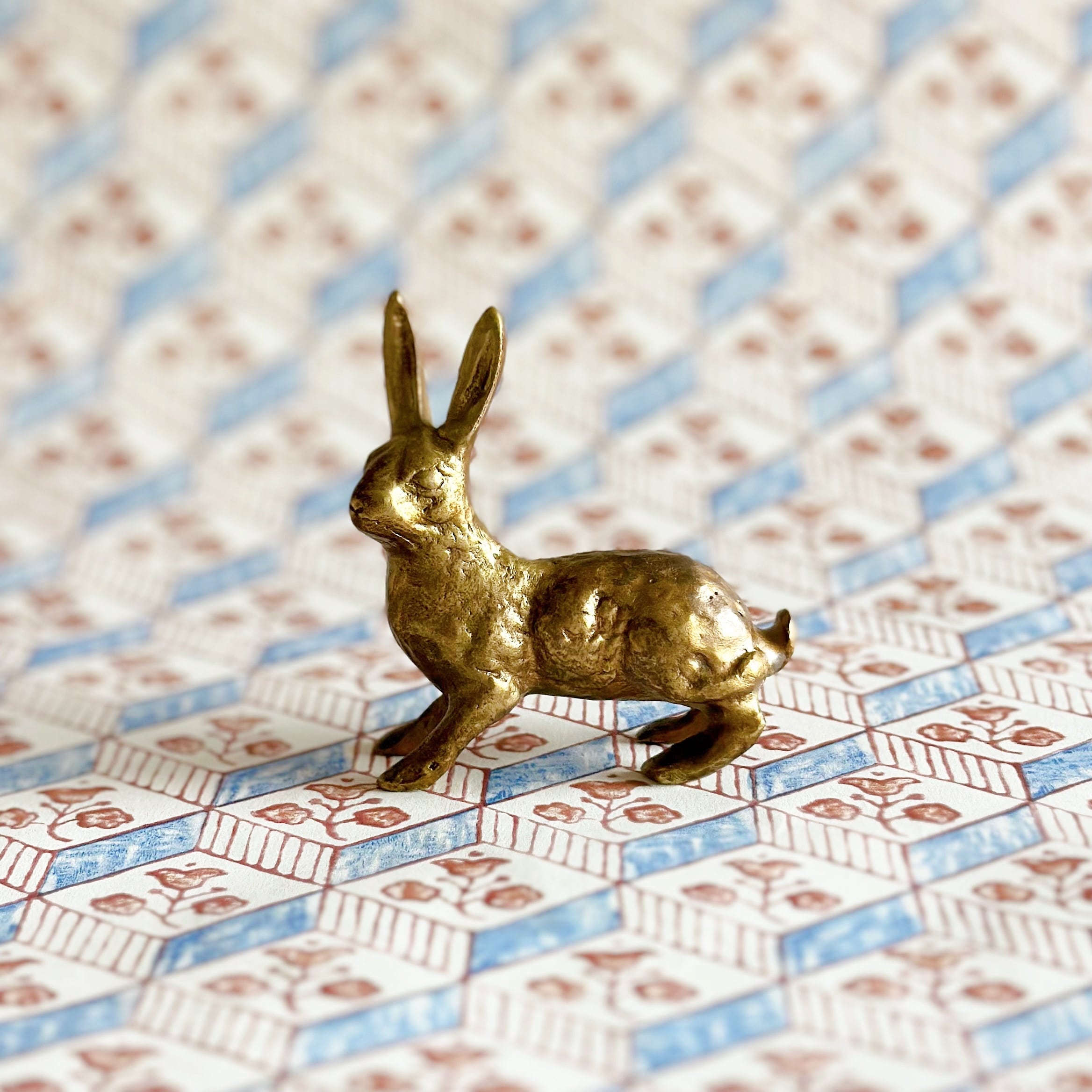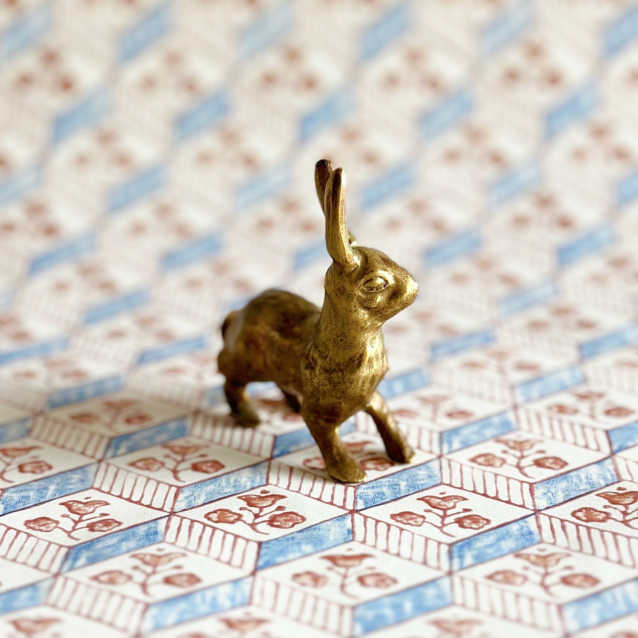 美しく繊細に彫られた、うさぎのブロンズのオブジェです。