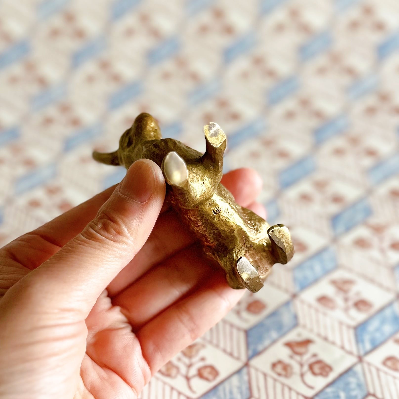手の中に閉じ込められるサイズで、ブロンズ製で重厚感もあります。