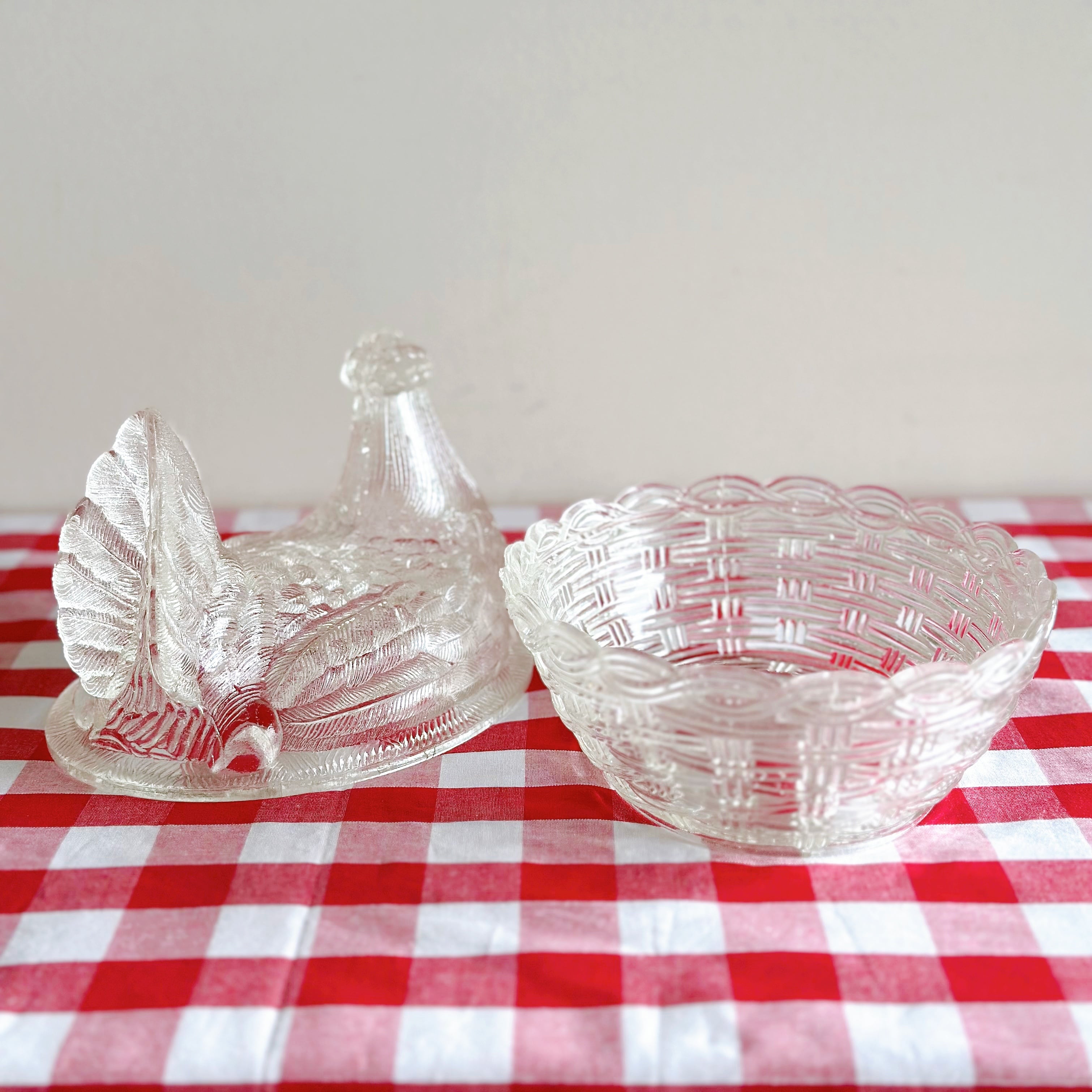 Hen-on-nest プレスガラス ガラスケース(フランス)