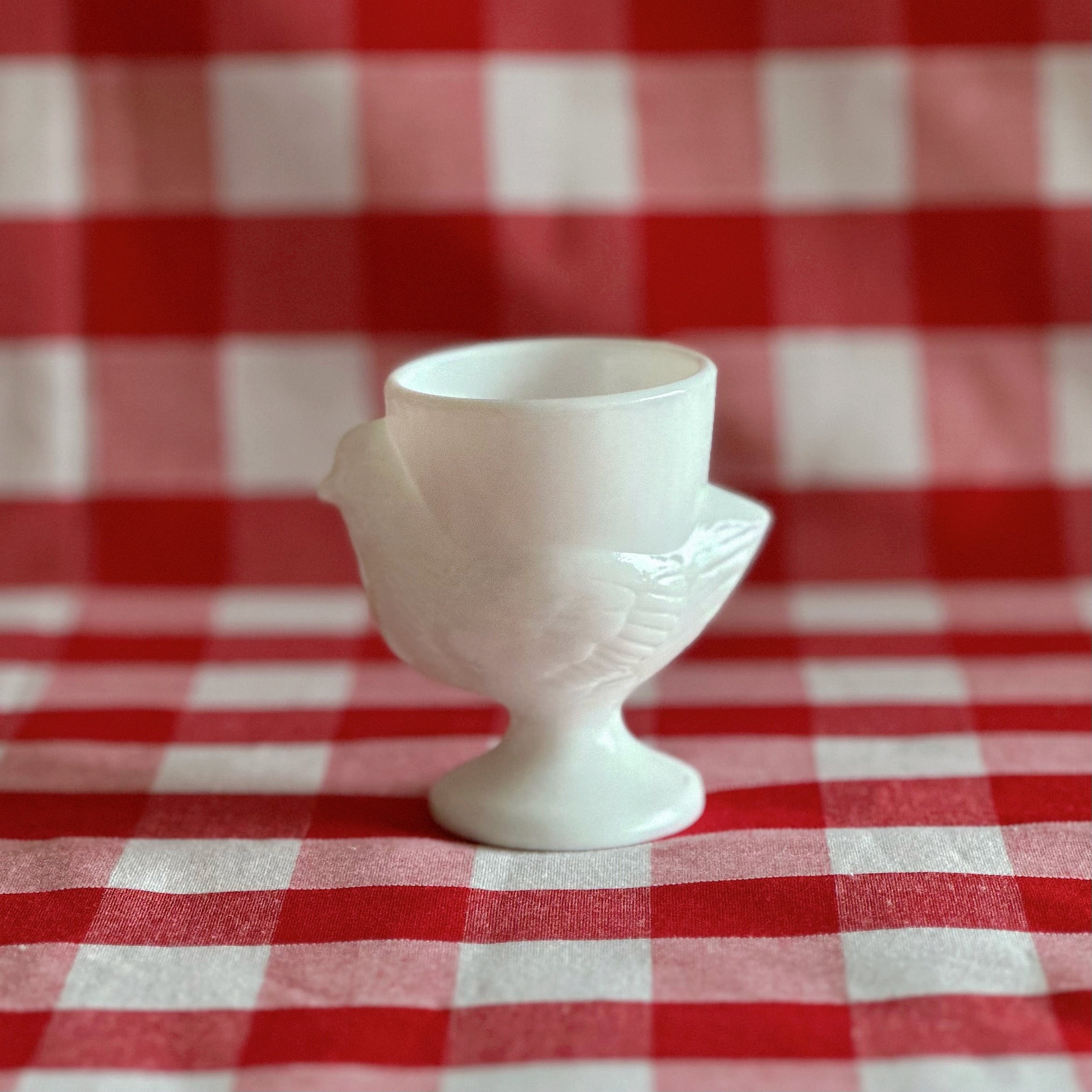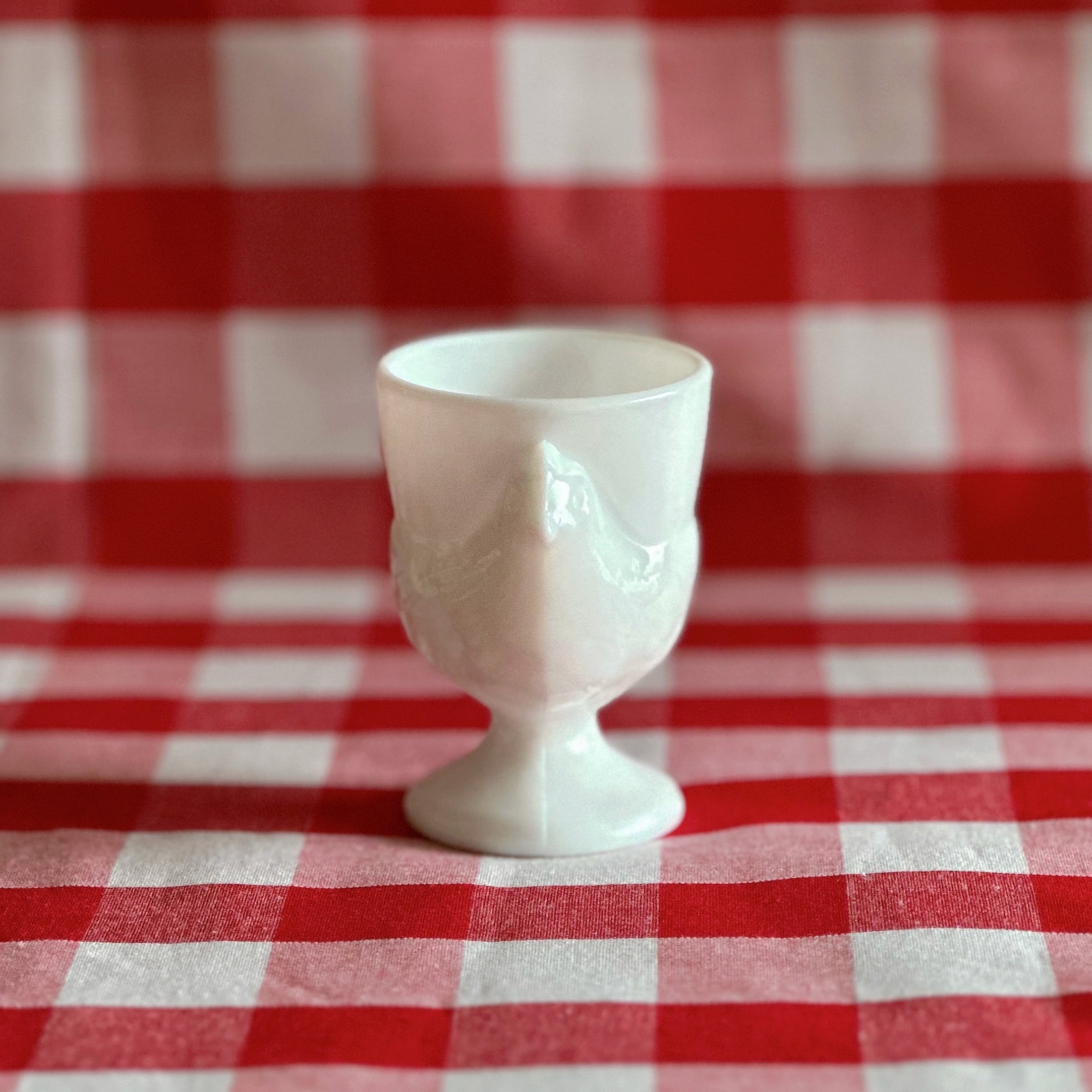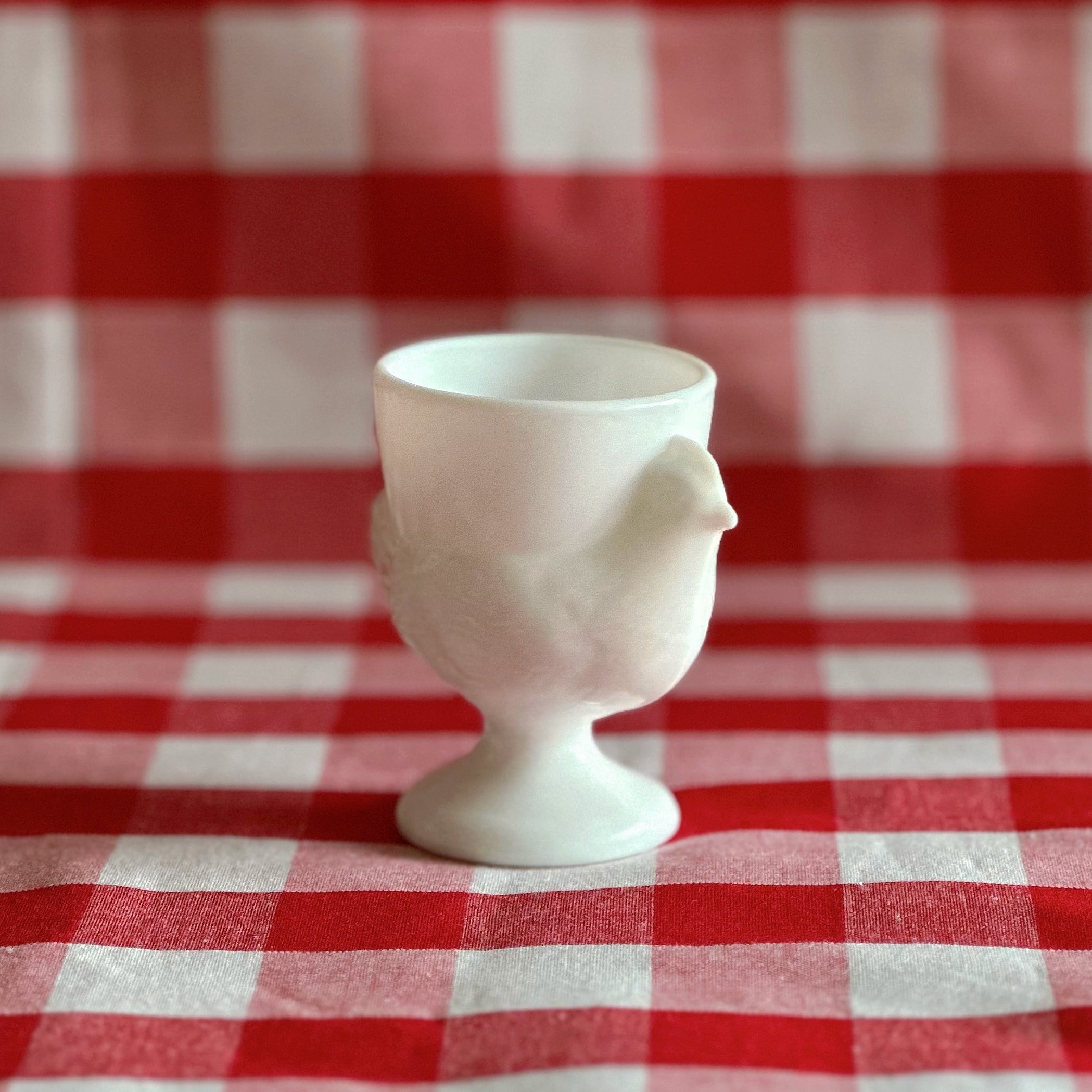 コクティエ エッグカップ 雌鳥 ミルクガラス(フランス)