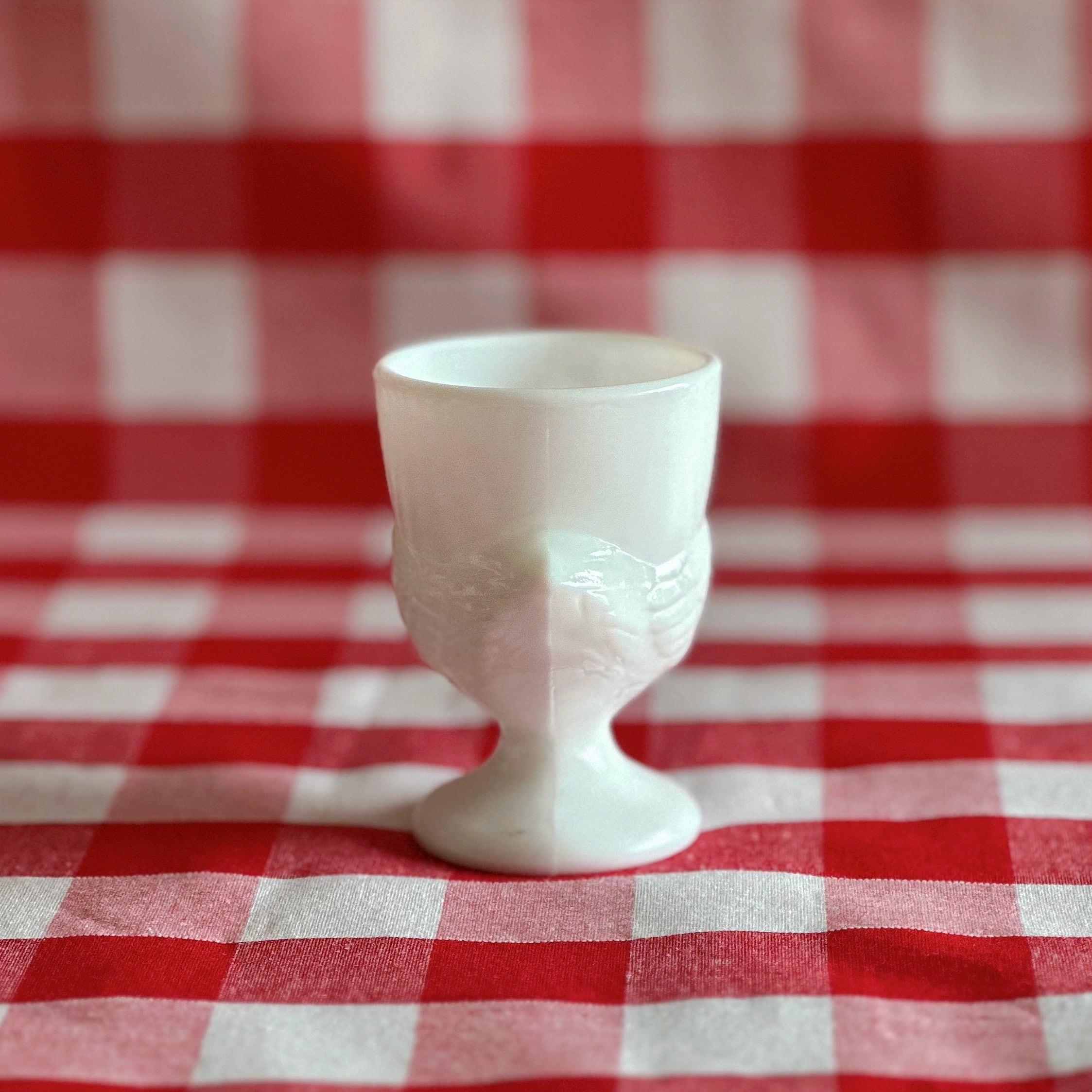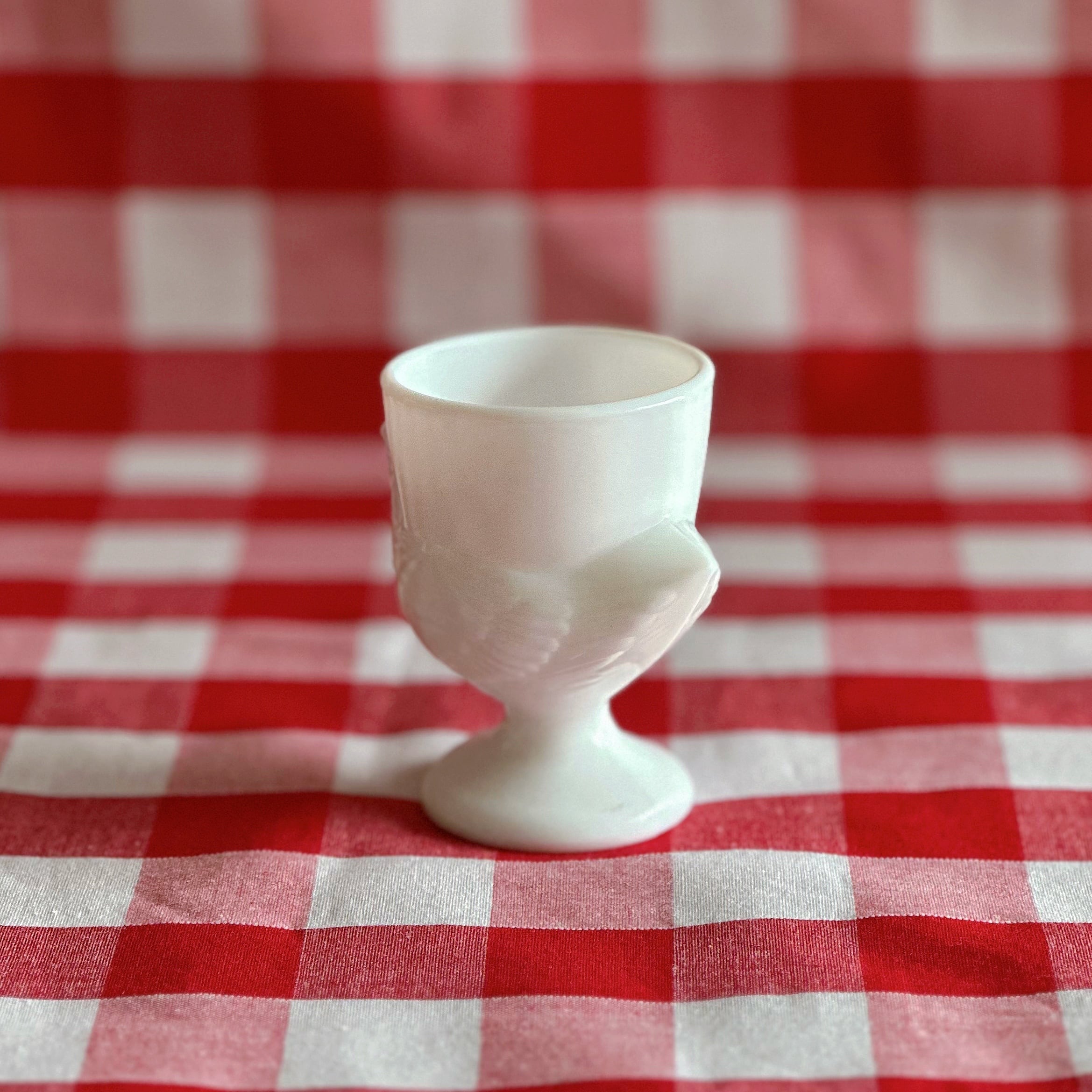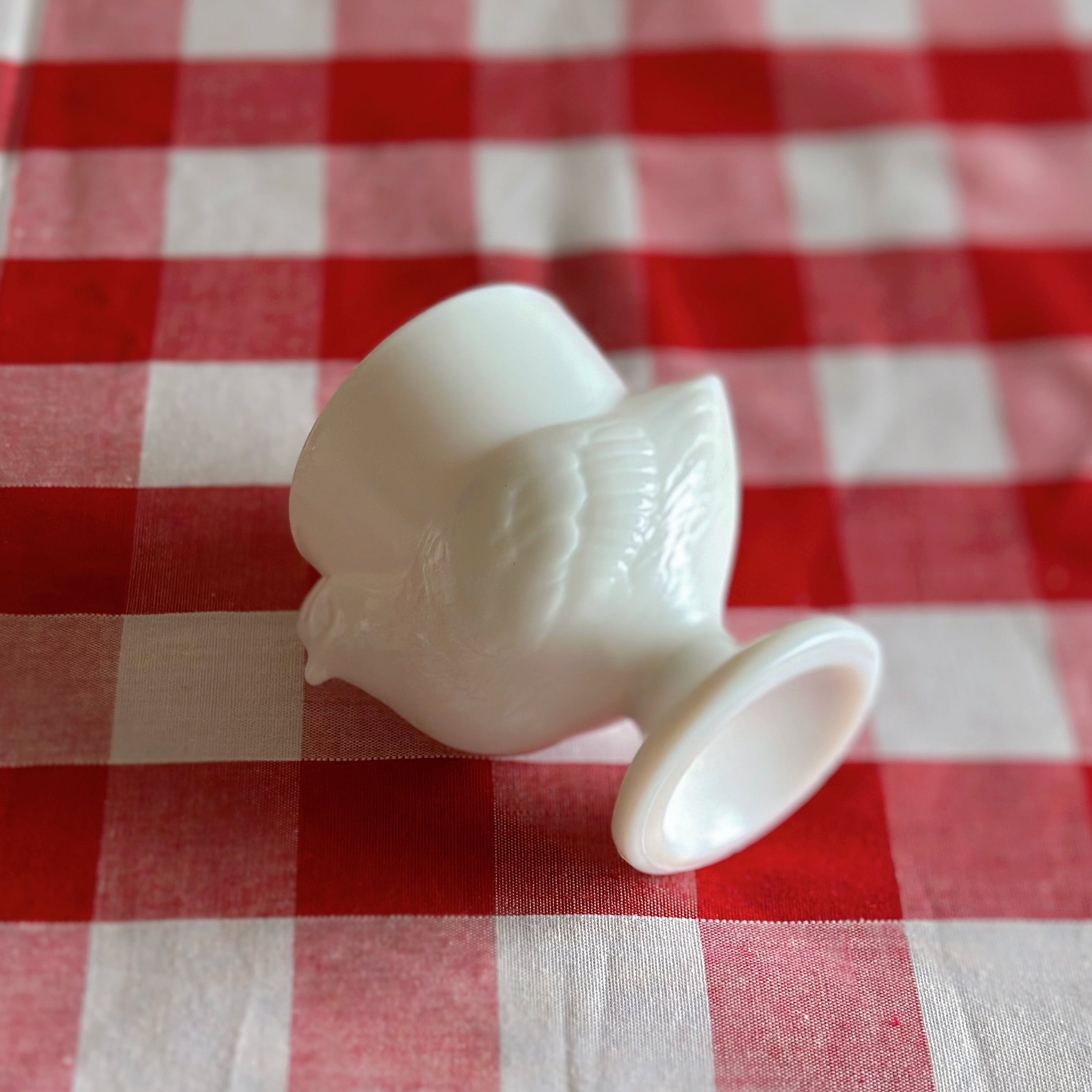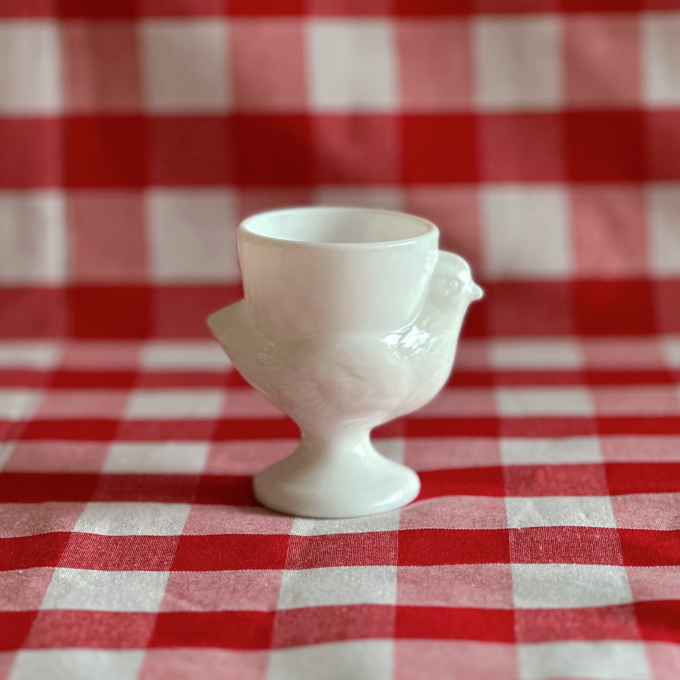 コクティエ エッグカップ 雌鳥 ミルクガラス(フランス)