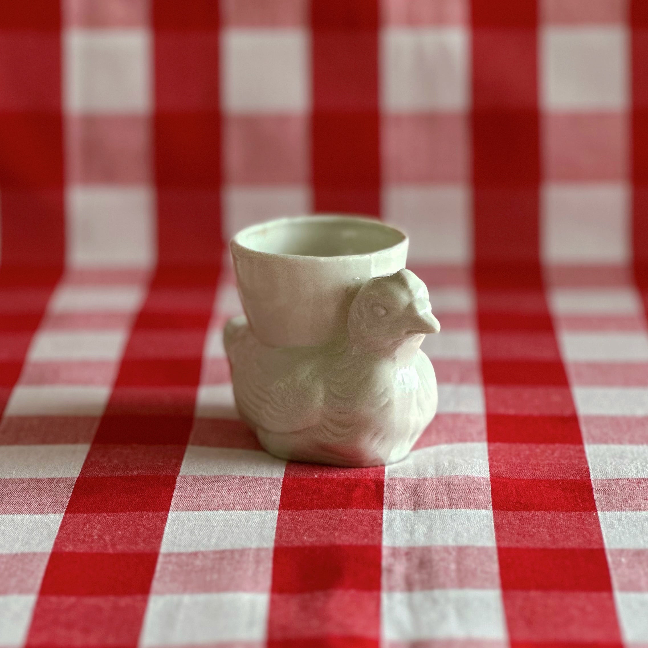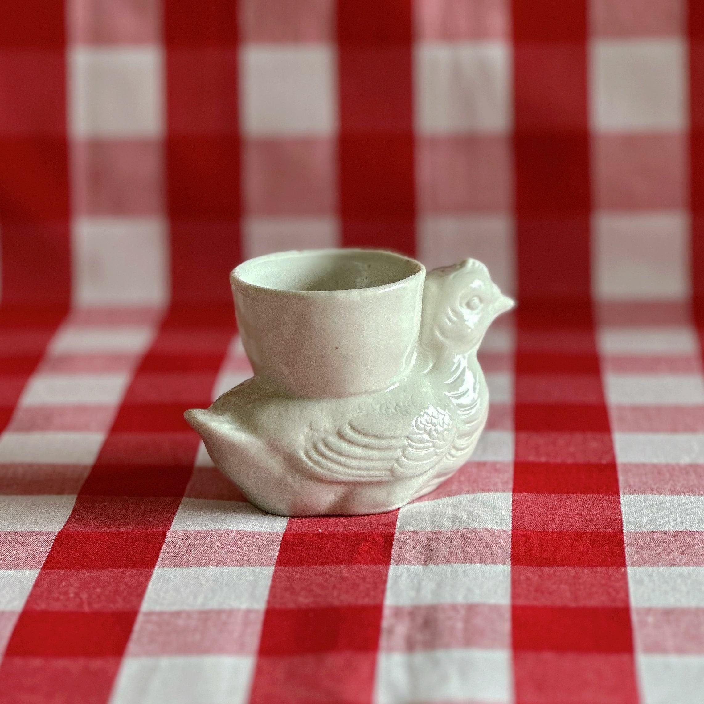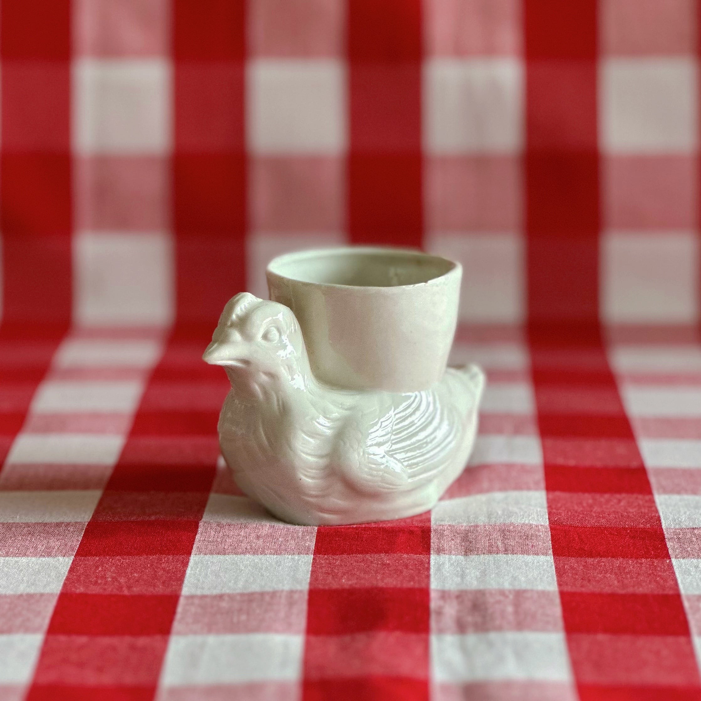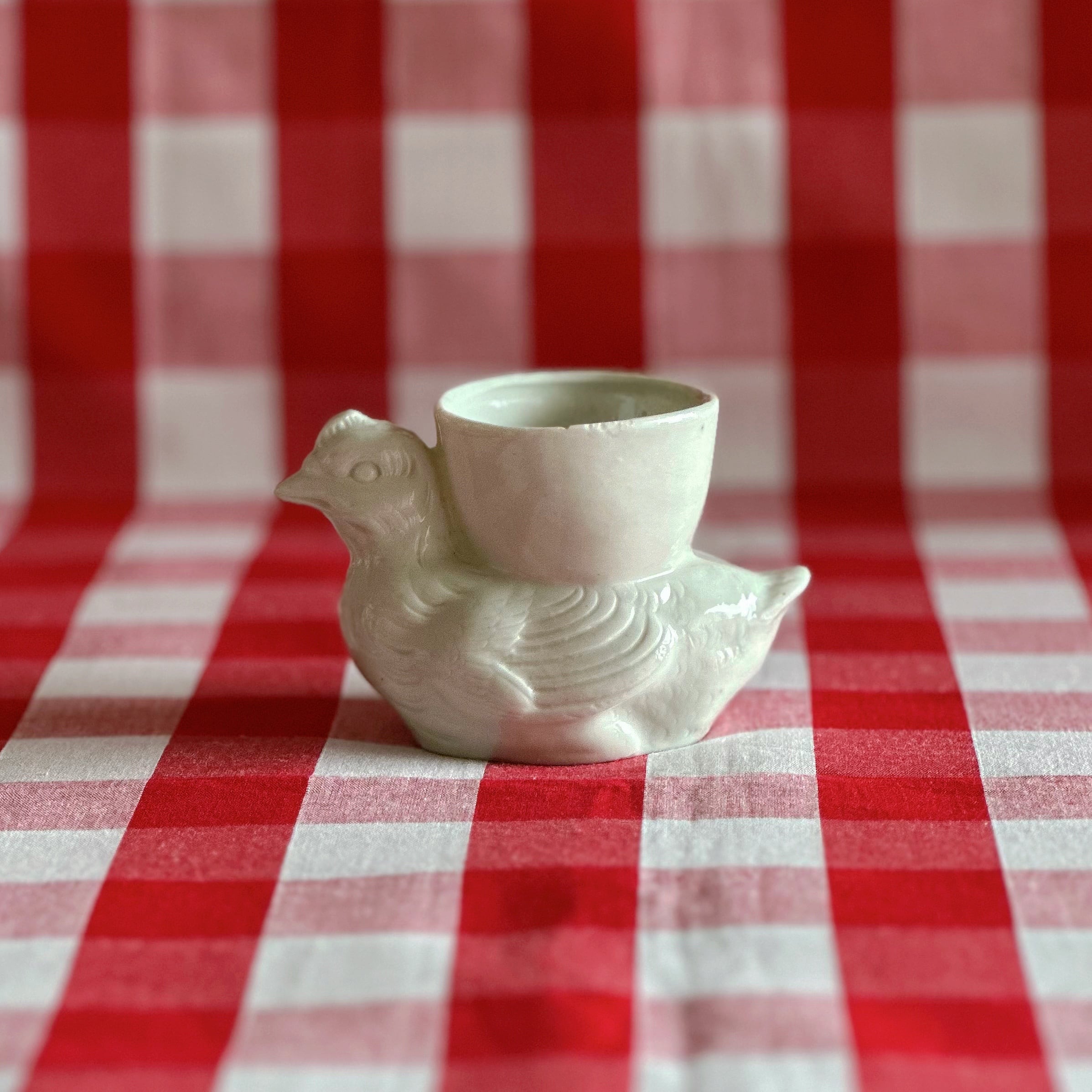 コクティエ エッグカップ 雌鳥 白磁器(フランス)
