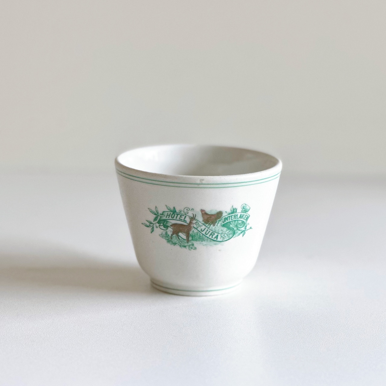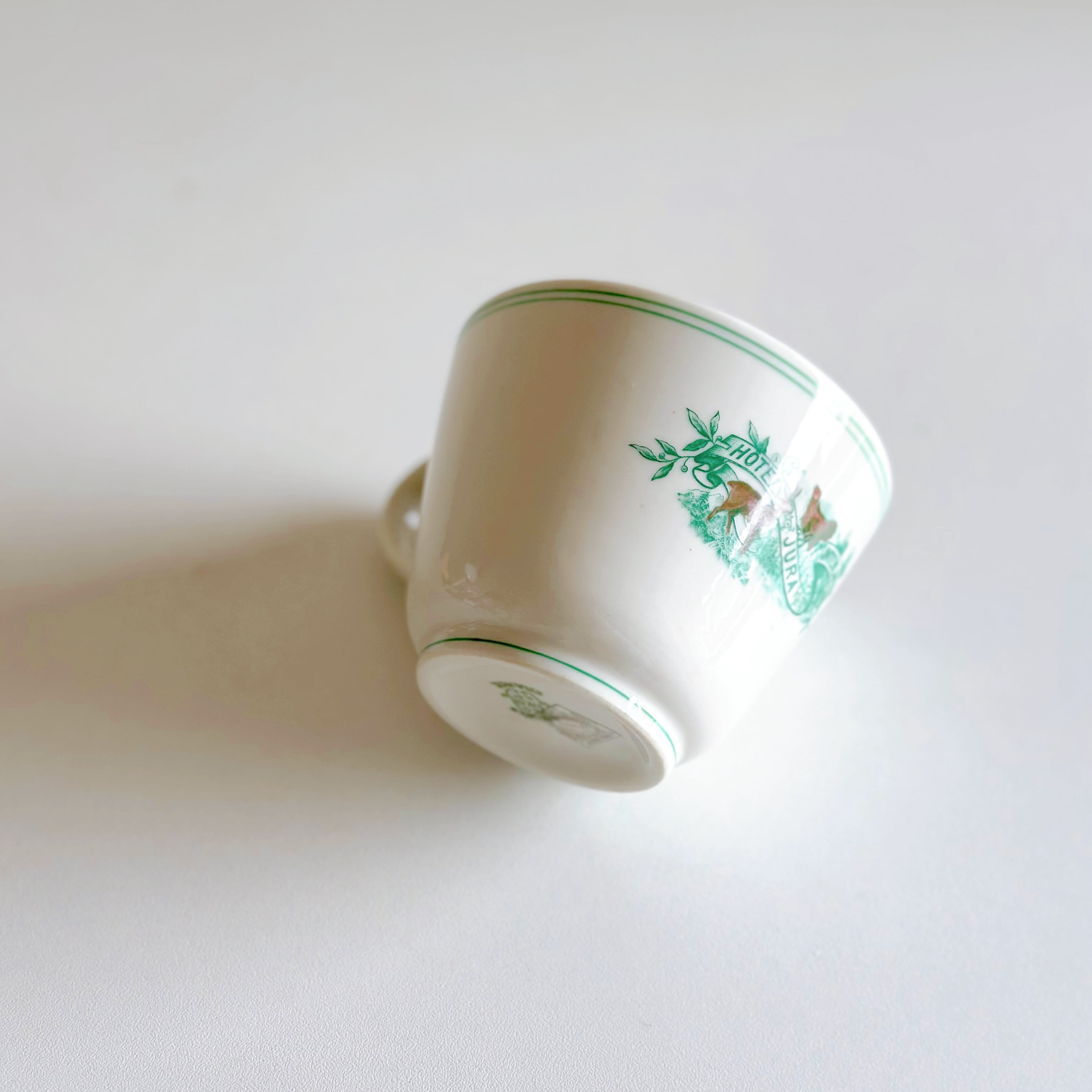 スイスの観光地 インターラケンにあった Hotel Jura Interlakenのために、リモージュ/ J. Charlionais et L. Pourailly で生産されたマグカップ