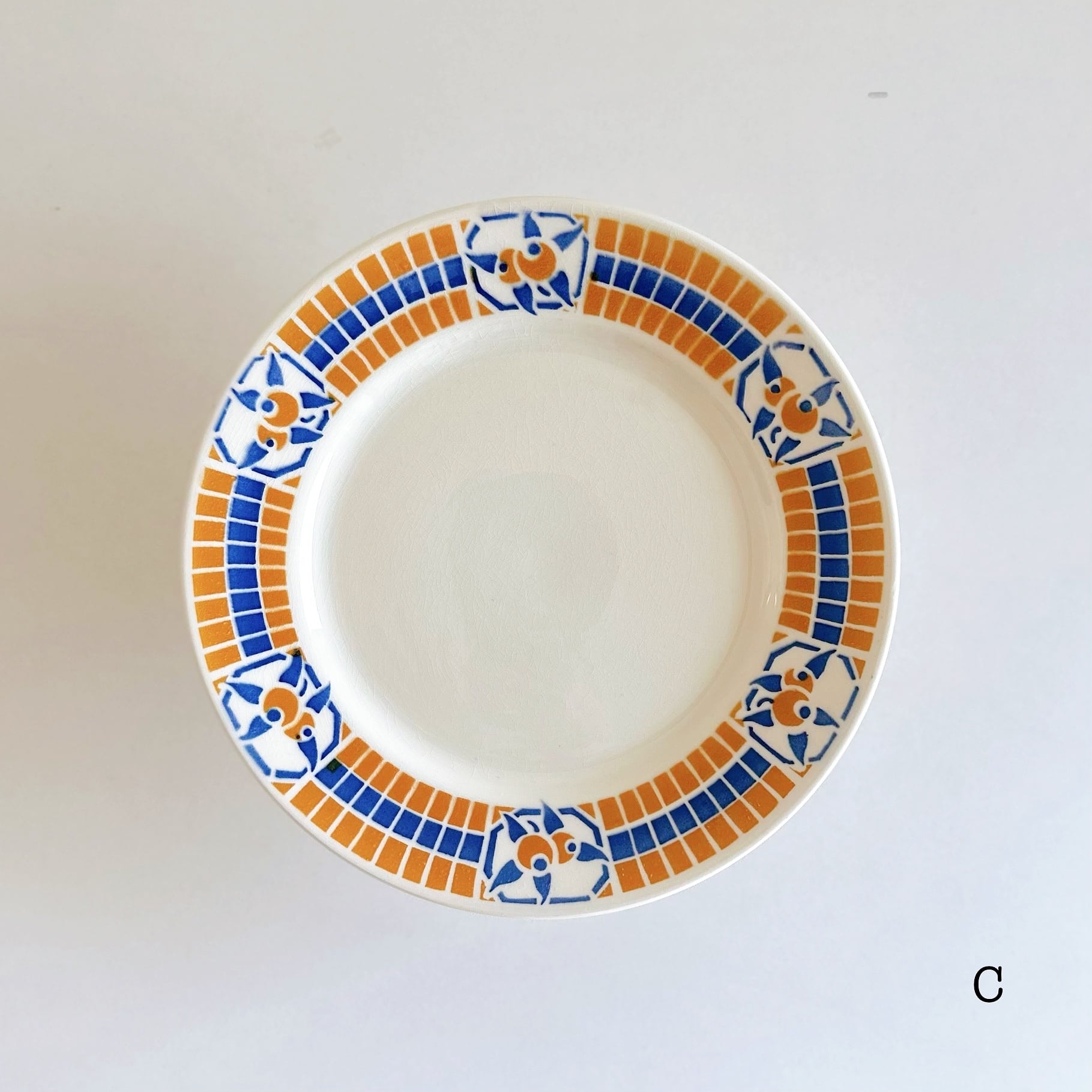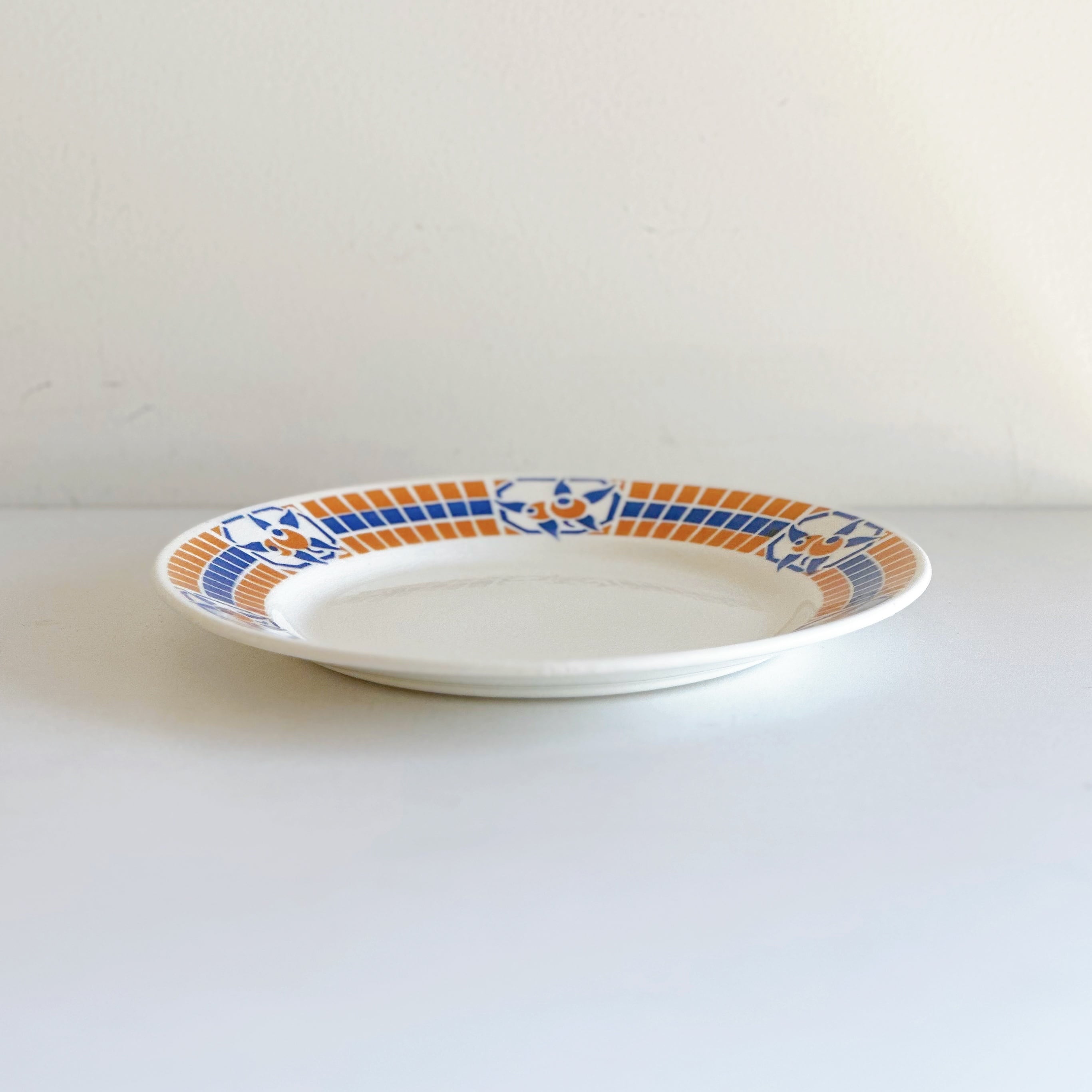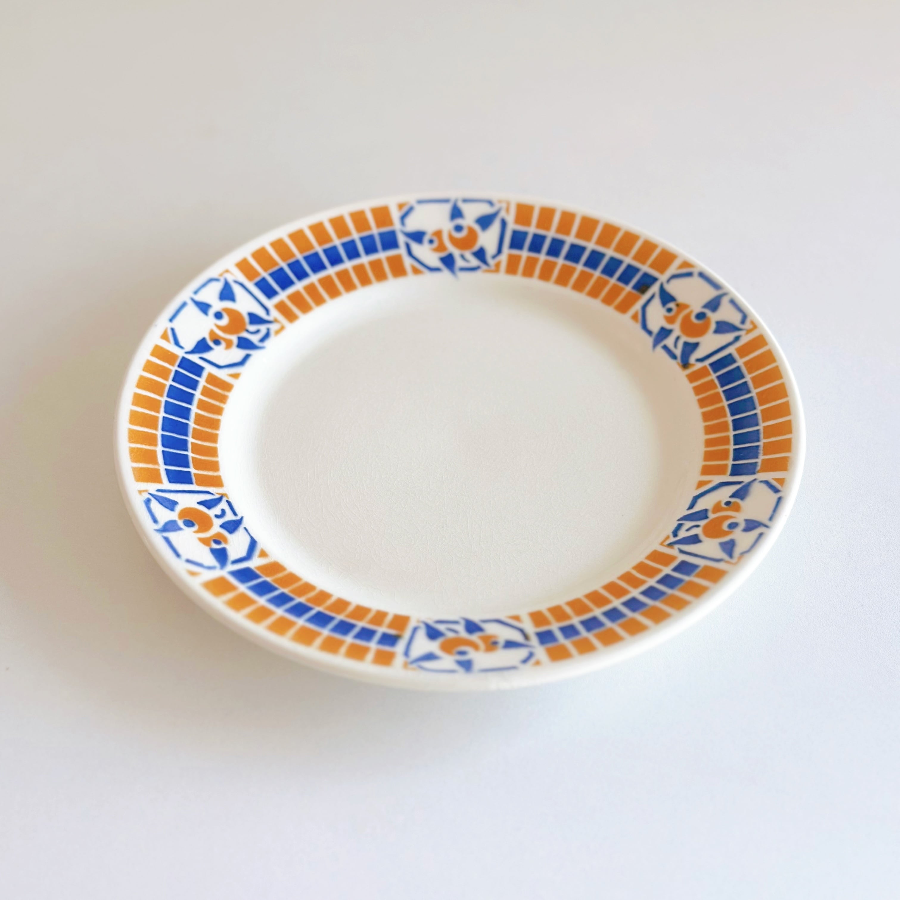 ブルーとオレンジのポショワールが、爽やかでかわいいプレートです。