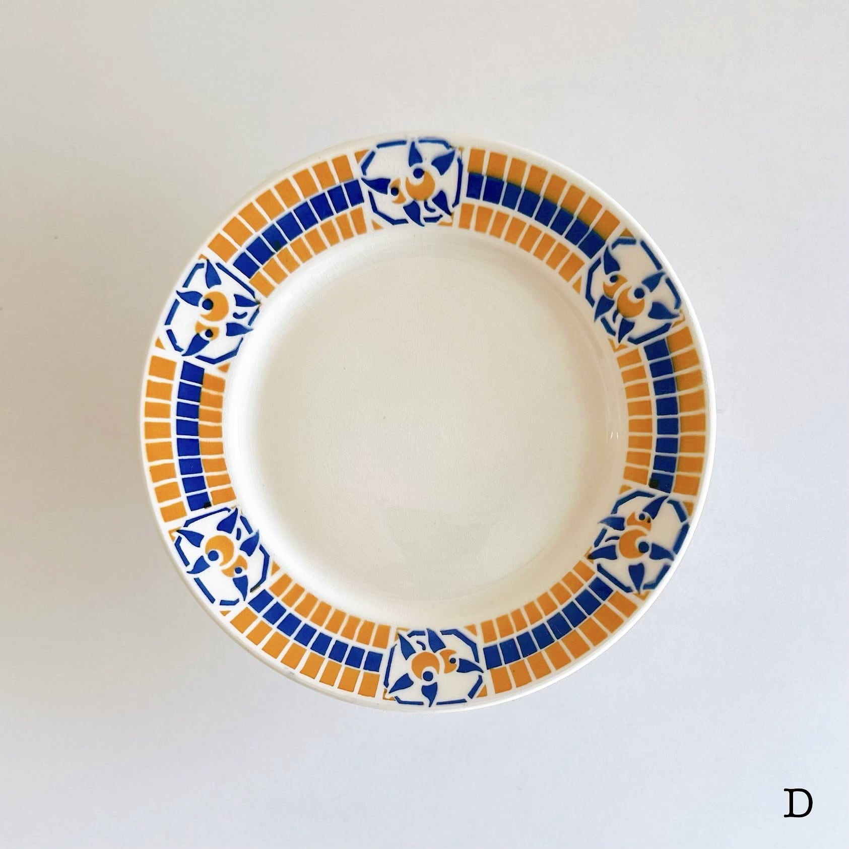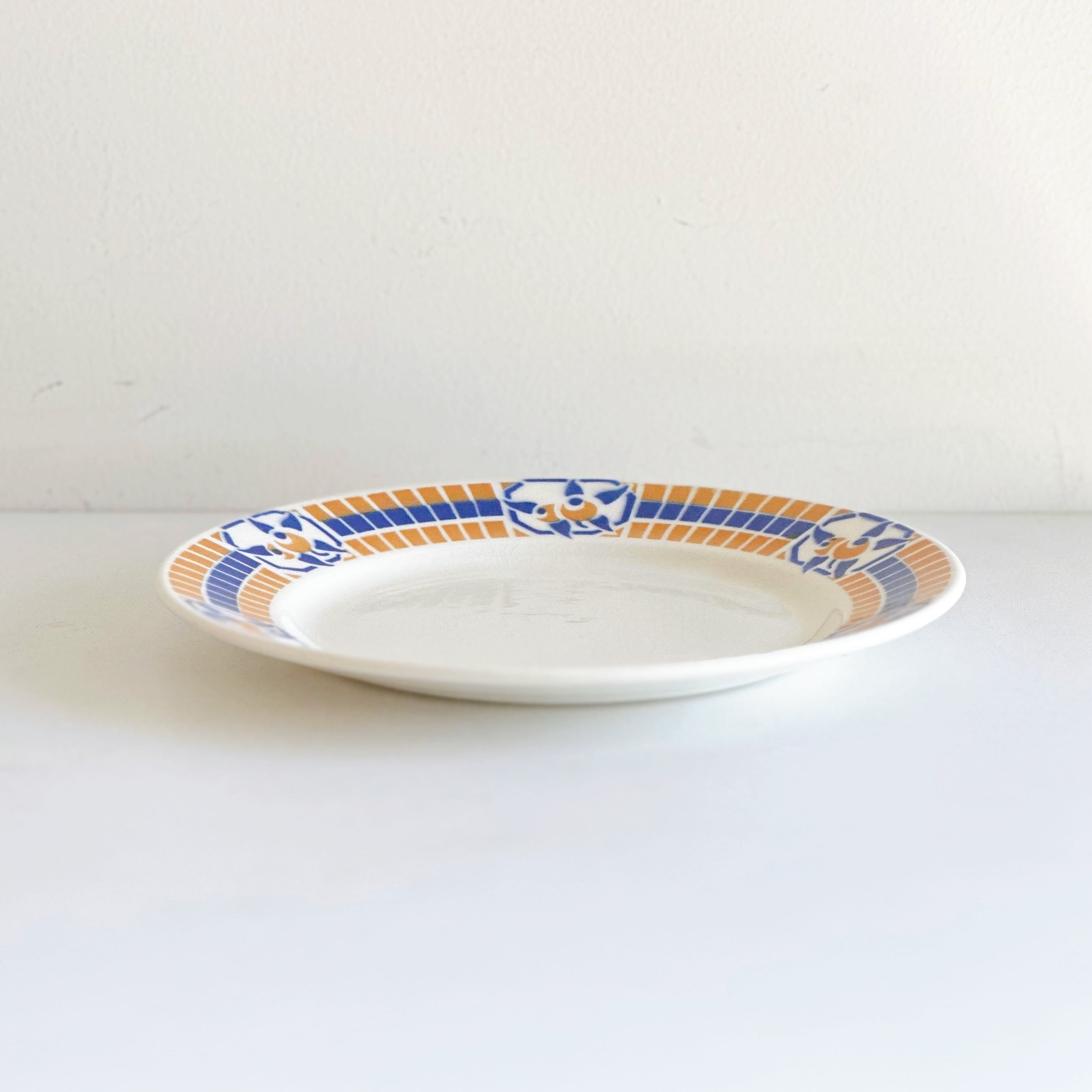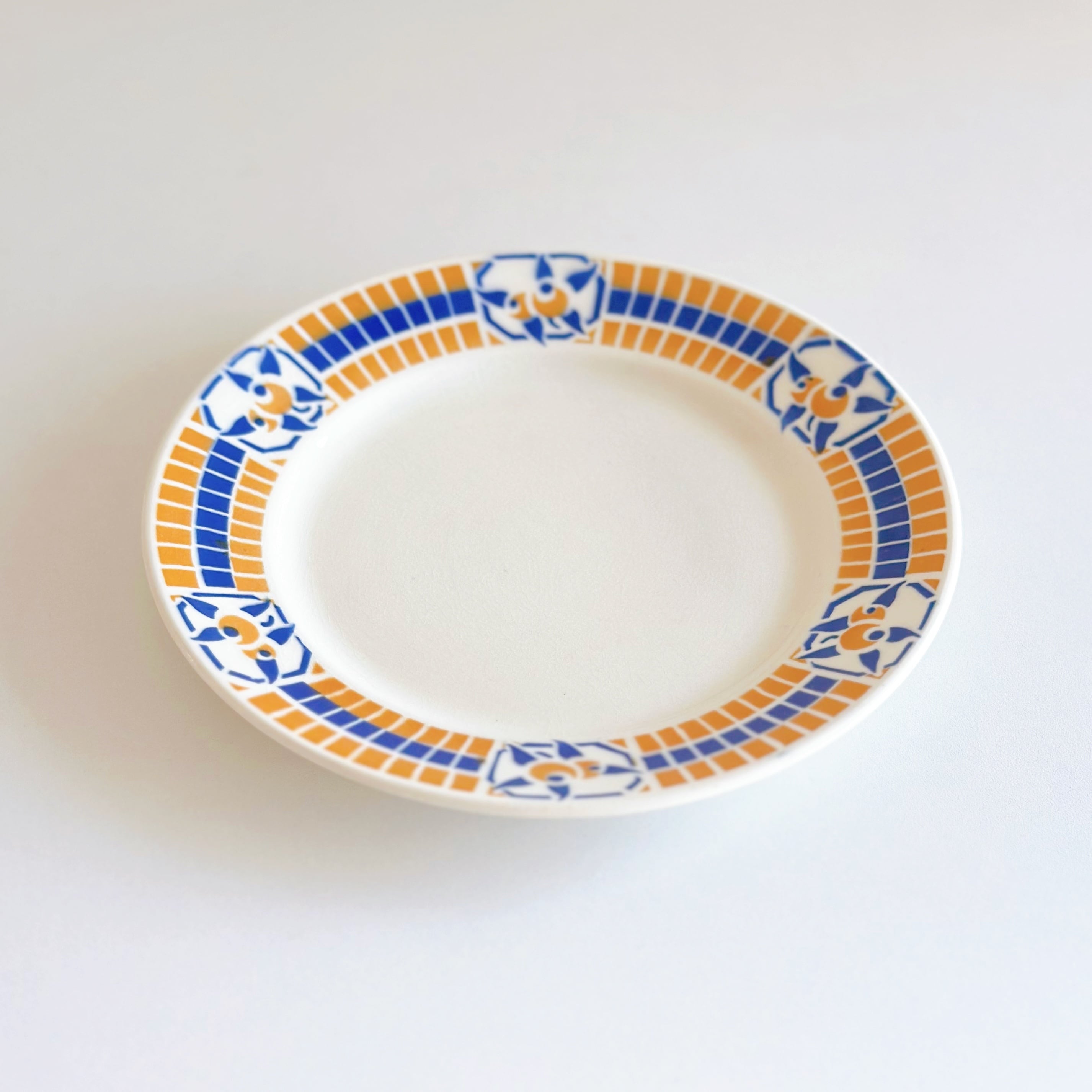 ブルーとオレンジのポショワールが、爽やかでかわいいプレートです。