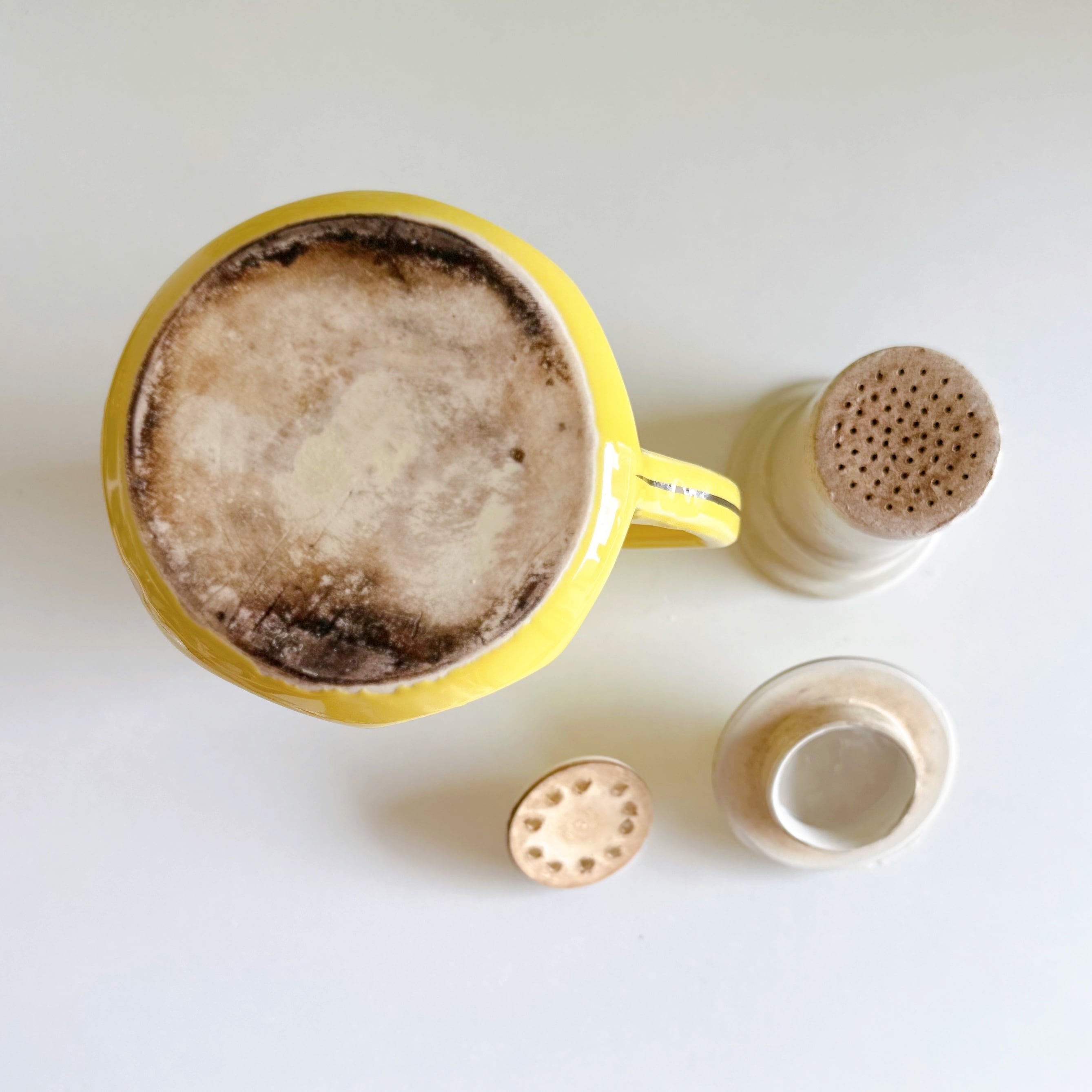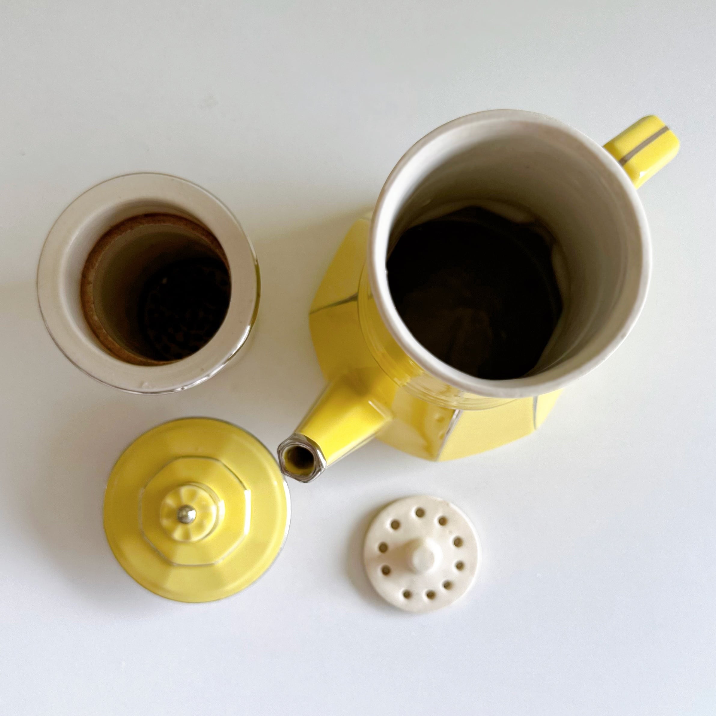 内部にセットする陶製のフィルターにコーヒー染みがありますが、他、ヒビ・カケなどなく、非常に良い状態です。