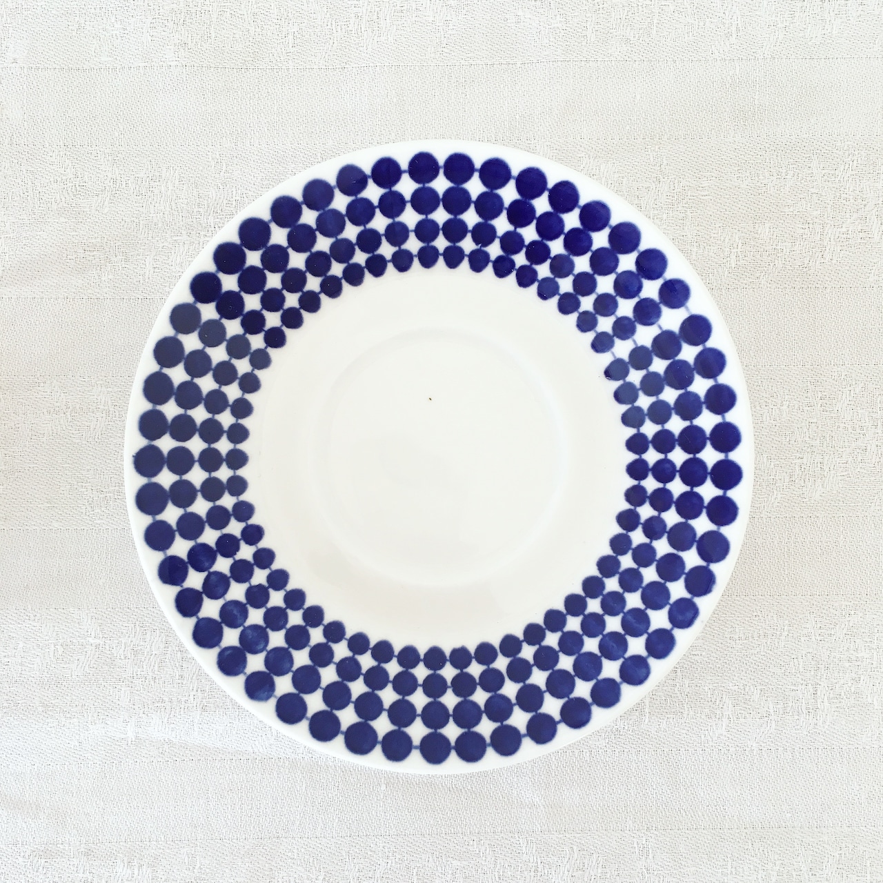 遠近法を用いたダークブルーのドットがシャープでクールな印象です。プレートとお揃いでいかがでしょうか。