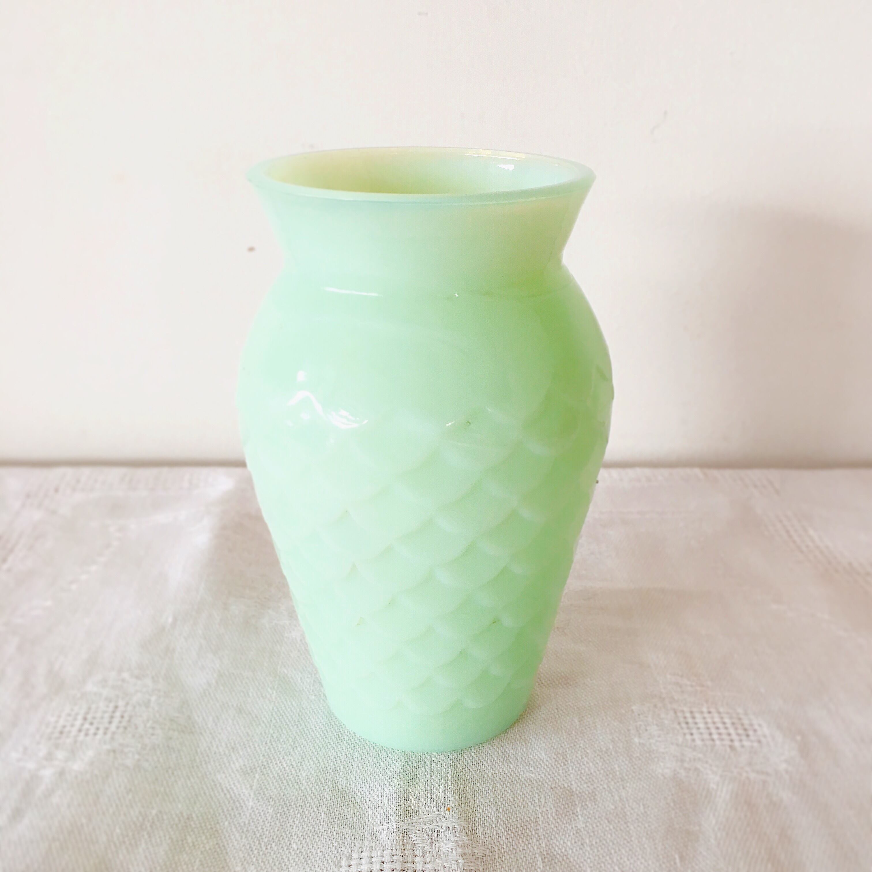 翡翠色のミルクガラス ヒヤシンスポット (フランス)