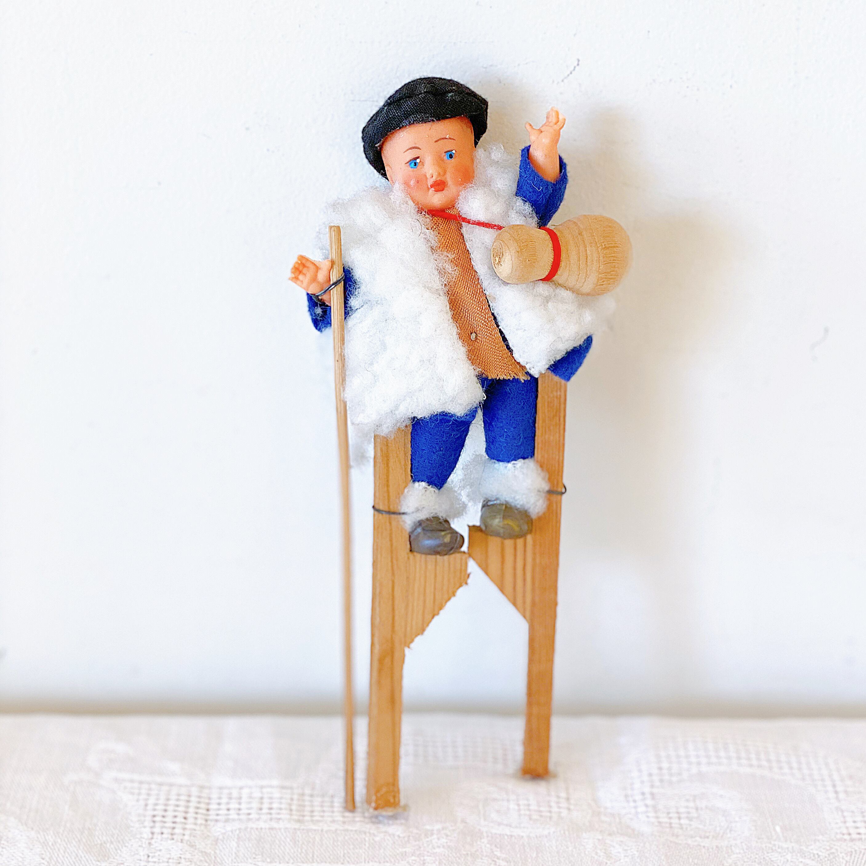雪深い里山を歩く男の子のお人形 (ドイツ)