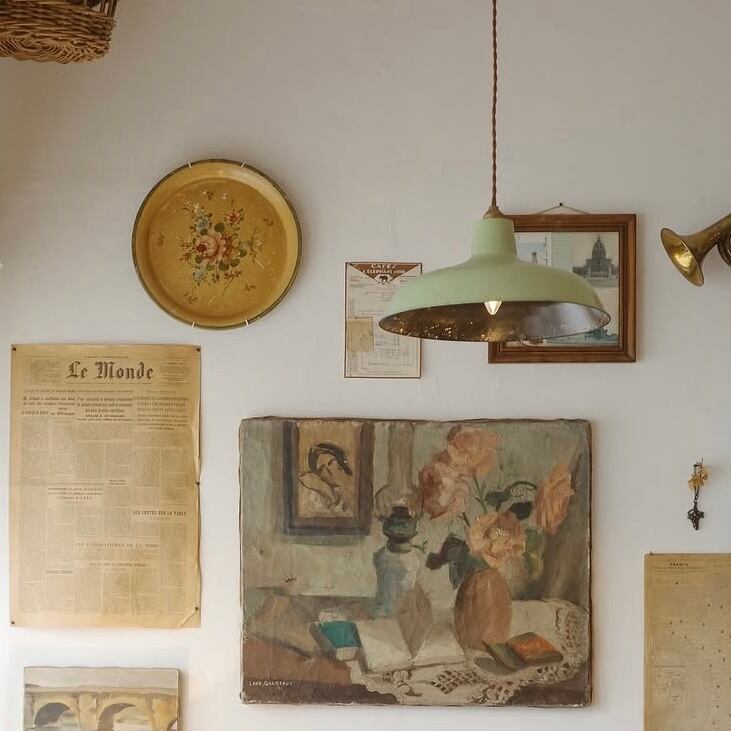 手書きの花束の装飾は、アンティークの名画を飾る感覚で、インテリアとしても素敵です。