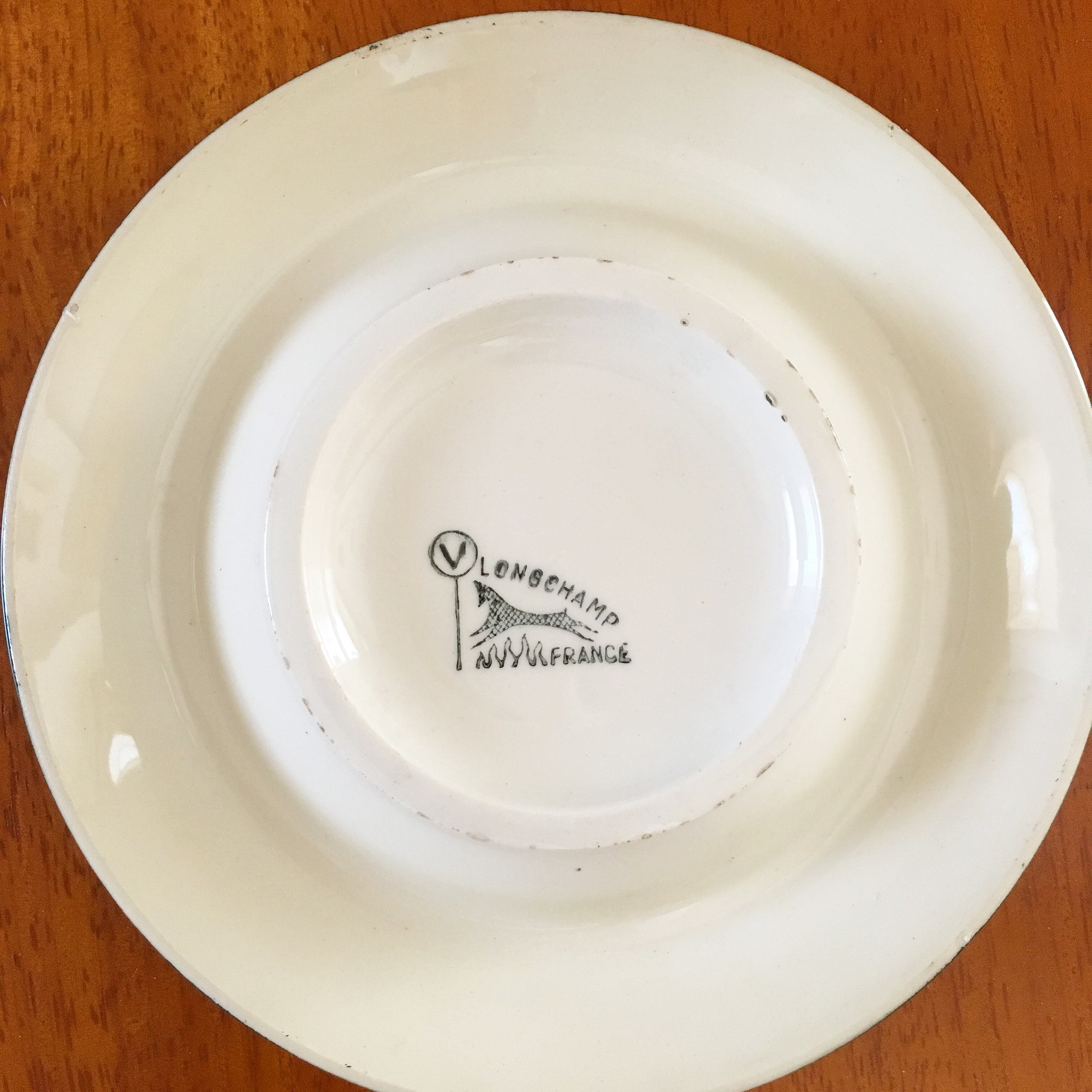 裏の刻印のLongchamp窯は1867年に、フランス・ブルゴーニュ地方に開窯され、2009年に閉窯されました。工場跡地は、陶芸家のための研究開発拠点として生まれ変わっています。また、近くには陶芸美術の国立高等学校もあり、今なお陶芸の町として有名です。