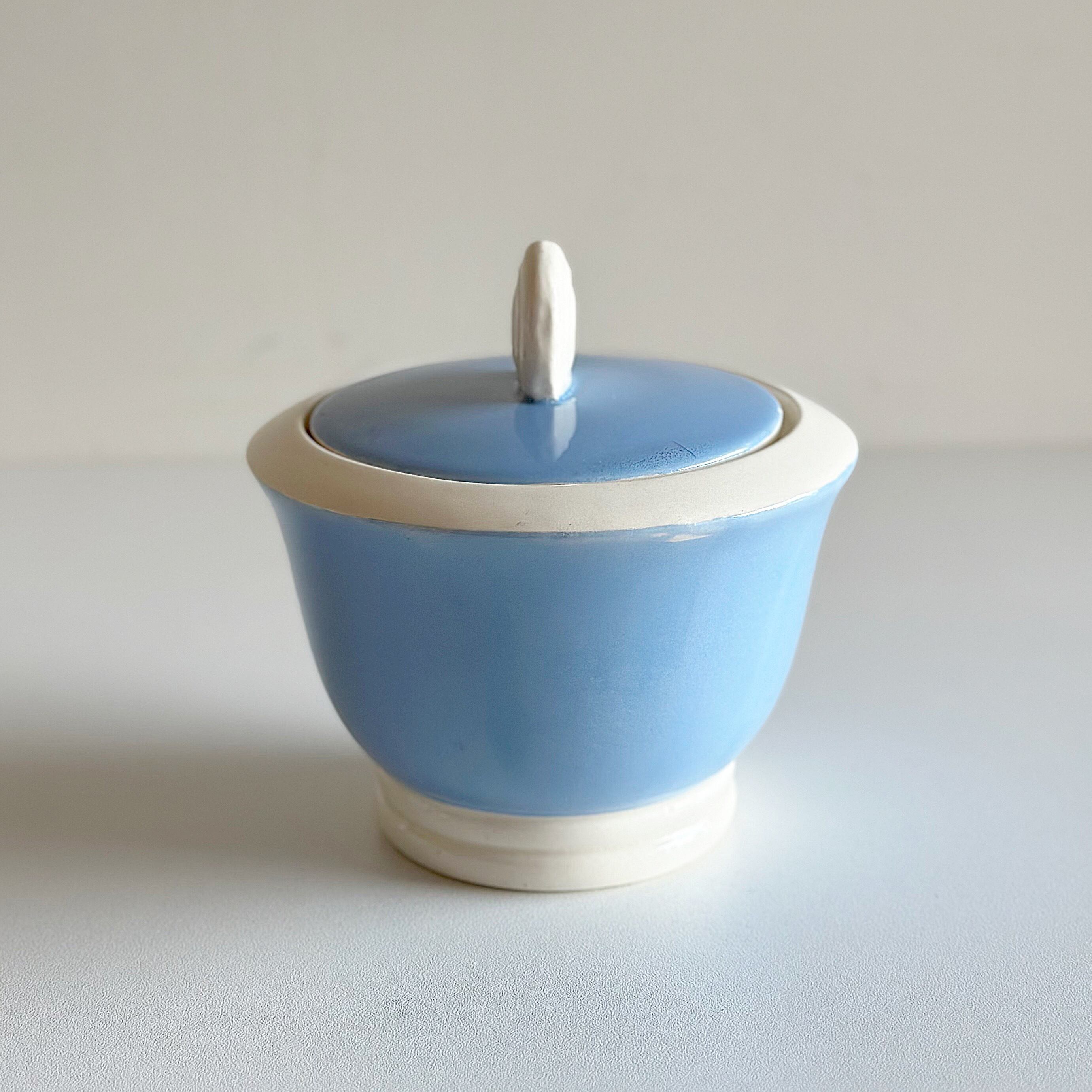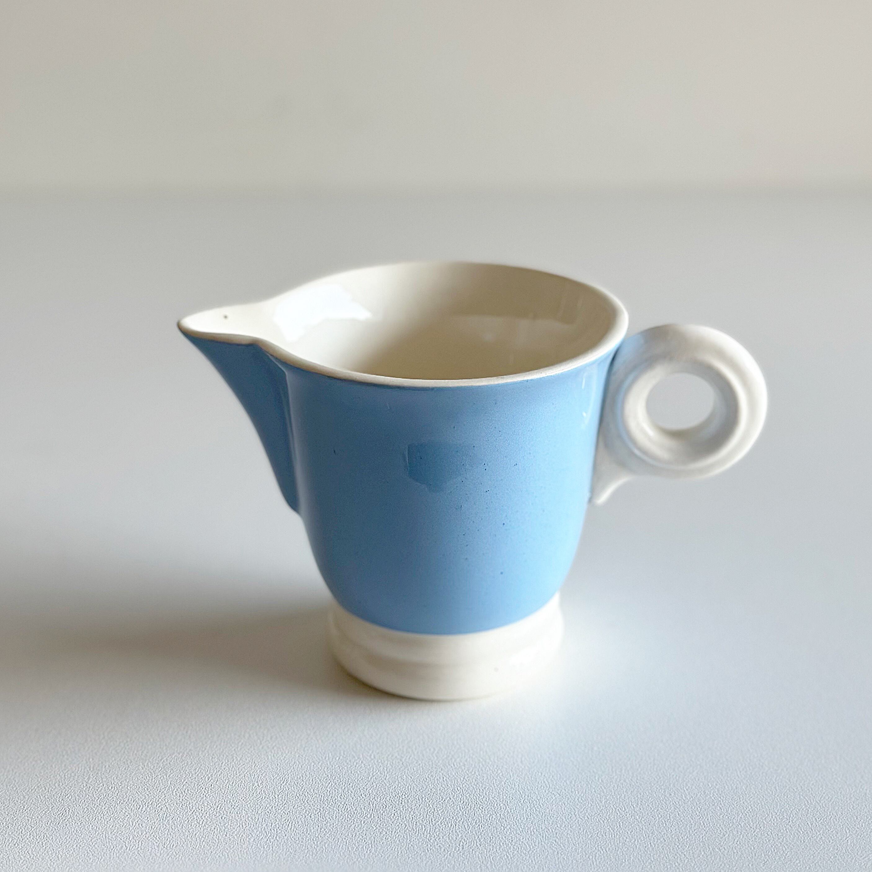 Sarreguemines サルグミンヌ アール・デコ スモーキーブルーのコーヒーポット・シュクリエ・ミルクポット 3点セット(フランス)